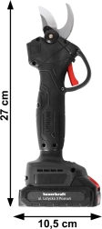Scherpe stalen messen en een krachtige motor (tot 600 W) zorgen voor schone en snelle sneden in takken tot 30 mm diameter – ideaal voor bomen, struiken en wijnranken.