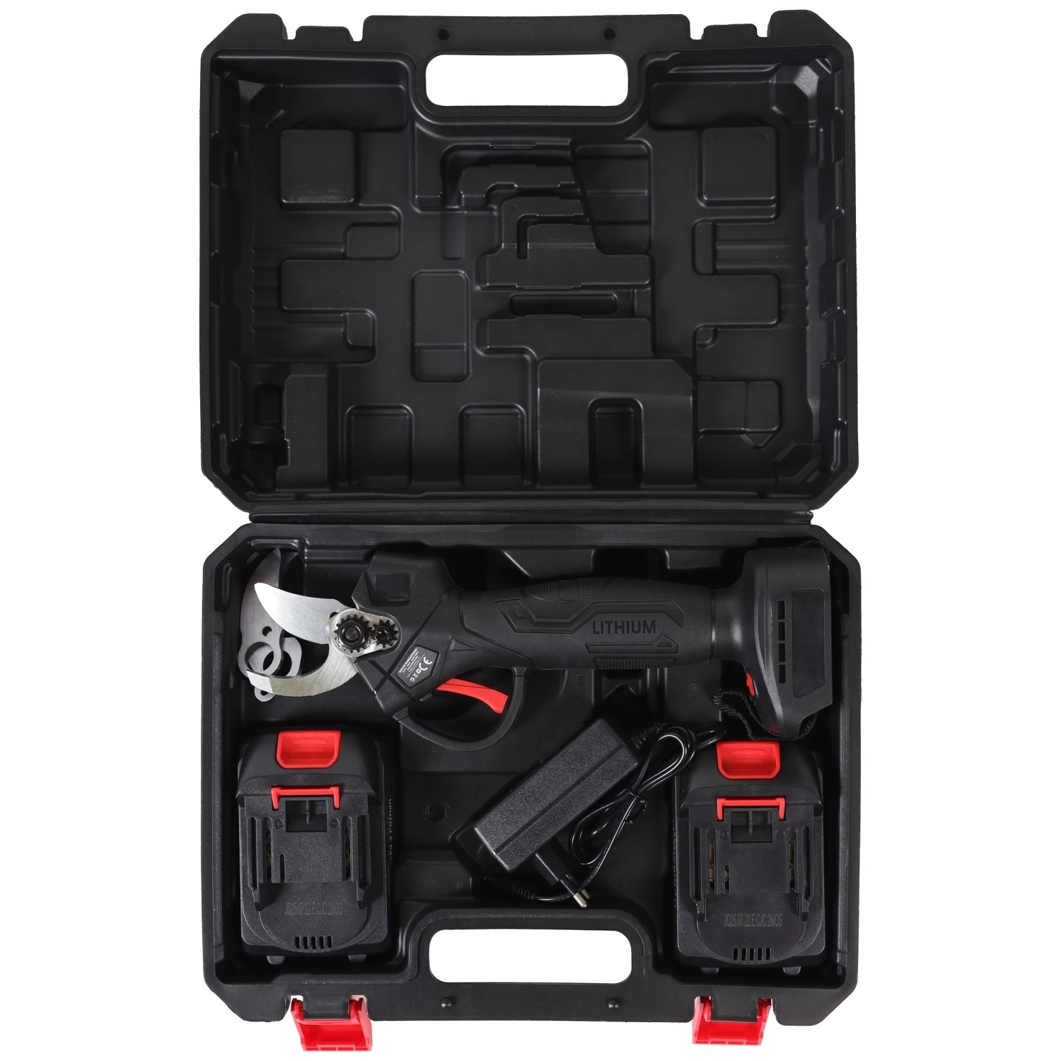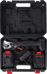 Twee trapstanden voor het openen van het mes maken het mogelijk de snijbreedte aan te passen aan het type tak – van fijne scheuten tot dikkere takken. De veiligheidsvergrendeling voorkomt onbedoeld openen van het mes tijdens transport en opslag. Meegeleverd is een complete accessoireset inclusief twee 21V-accu’s, oplader, reservemessen en onderhoudsset voor een lange levensduur van het gereedschap.