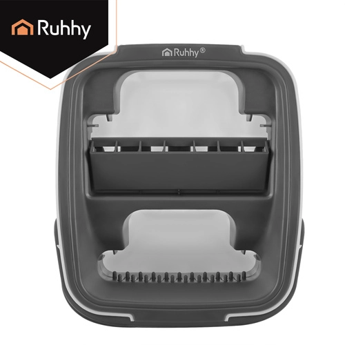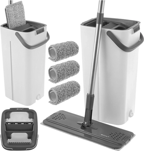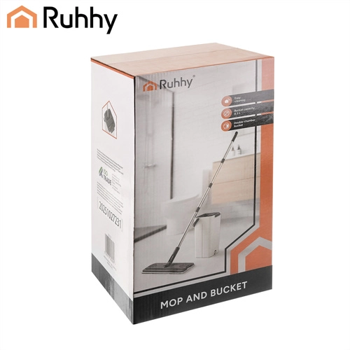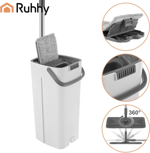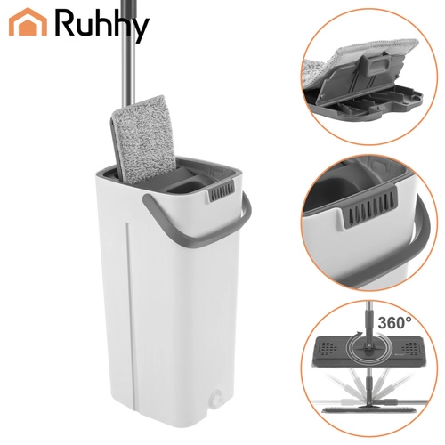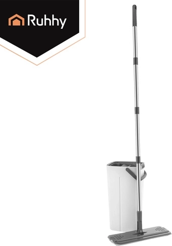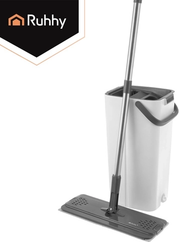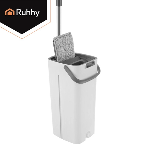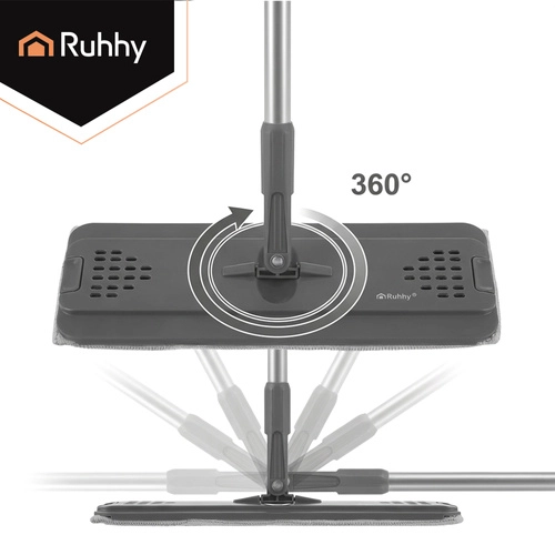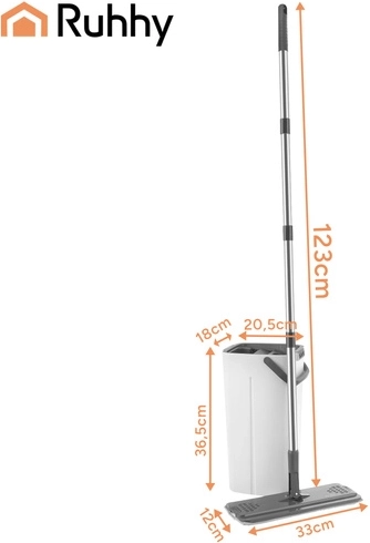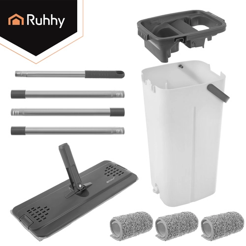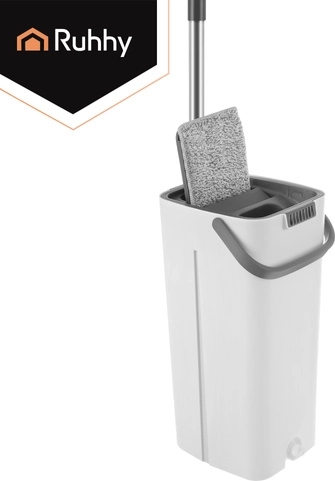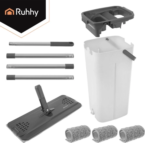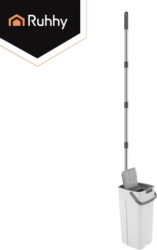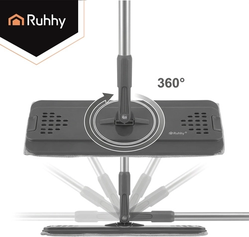 Nooit meer wassen in troebel water. Het dubbelkamersysteem van RUHHY garandeert dat je de vloer altijd dweilt met vers schoon water, terwijl vuil in de aparte kamer blijft. Het geïntegreerde handsfree wringmechanisme verwijdert snel overtollig water, haren en stof van de hoes, zodat de vloer sneller en streepvrij droogt.