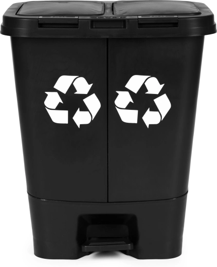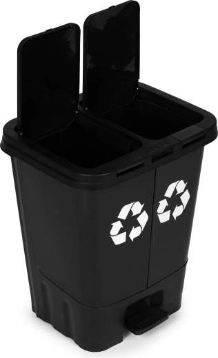 De dubbelvaks afvalemmer voor gescheiden afval met een totale inhoud van 40 l combineert praktische functies met hoge duurzaamheid. De behuizing van hoogwaardige HDPE is bestand tegen UV-straling, chemicaliën en mechanische slijtage, waardoor hij geschikt is voor huishoudens, kantoren en bedrijfsruimtes. Dankzij de twee aparte compartimenten scheidt u afval gemakkelijk op één plek.