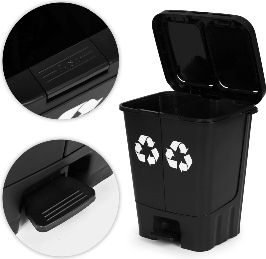 Gescheiden vakken maken het gemakkelijk om restafval en recyclebare materialen te onderscheiden zonder meerdere bakken nodig te hebben. Ideaal voor keuken, kantoor en kleinere bedrijfsruimtes.