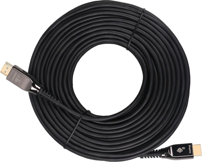 De optische HDMI 2.1-kabel biedt topbeeld en -geluid in resoluties tot 8K, met vloeiendheid tot 60 Hz en ondersteuning van moderne formaten. AOC-technologie minimaliseert interferentie en signaalverlies, waardoor hij geschikt is voor trajecten waar standaard koperen kabels tekortschieten.