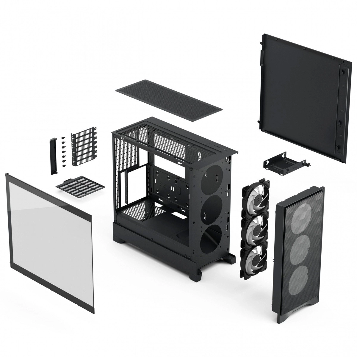 De Pop 2 Air Black Solid is ontworpen met focus op efficiënte koeling en een strak, minimalistisch uiterlijk. De fijne frontmesh met geometrisch patroon en de drie krachtige ventilatoren met afgeschuinde bladen zorgen direct uit de doos voor een sterke luchtstroom. Dankzij de royale binnenruimte bouw je moeiteloos een moderne gaming-pc met lange grafische kaarten en hoge luchtkoelers.