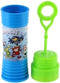 Leuke bellenblaas voor kinderen met een inhoud van 50 ml die prachtige kleurrijke bellen maakt en in het deksel een mini doolhof met balletje verbergt. Een geweldige keuze voor kinderfeestjes, buitenspelen of als klein cadeautje. Motieven en kleuren variëren afhankelijk van de actuele voorraad.