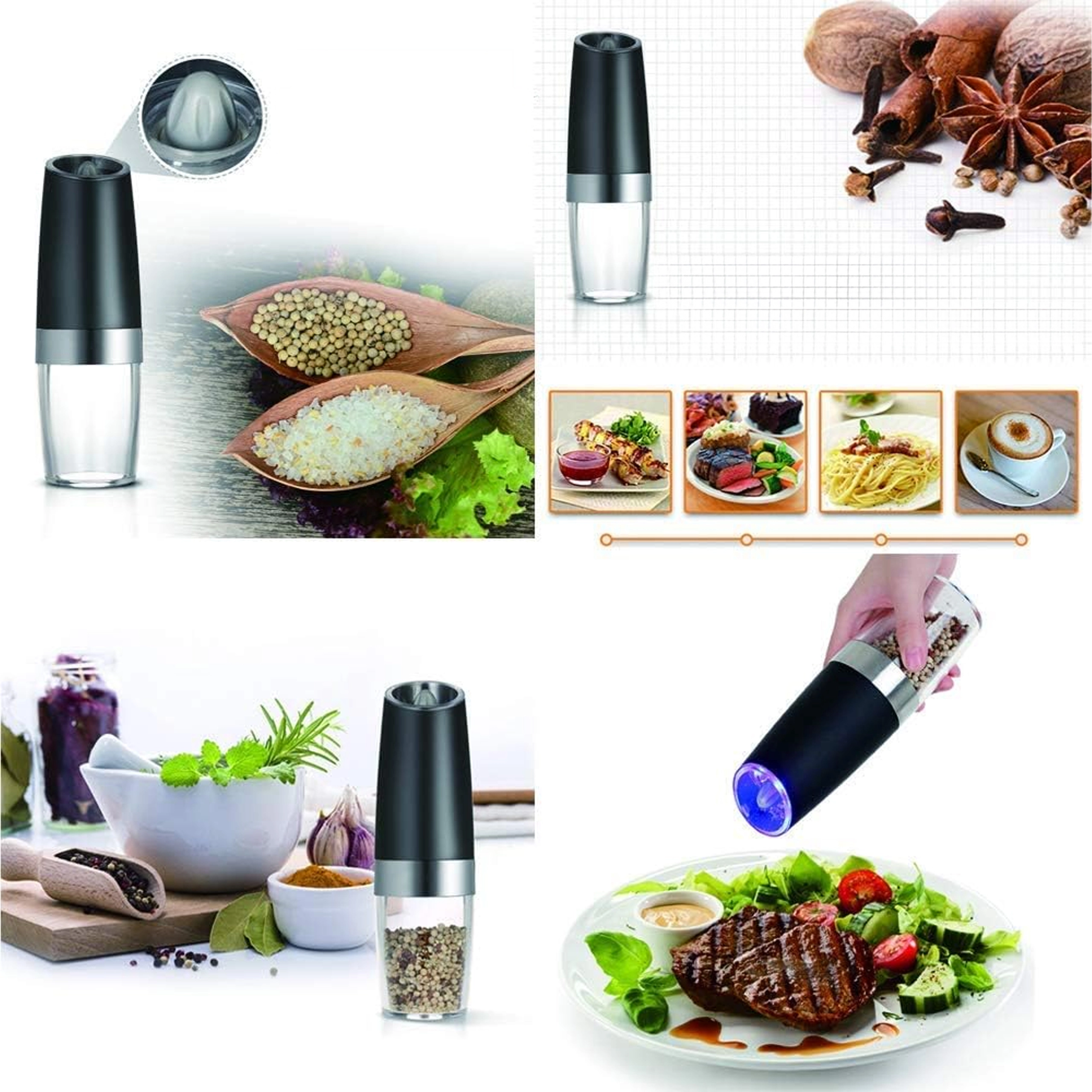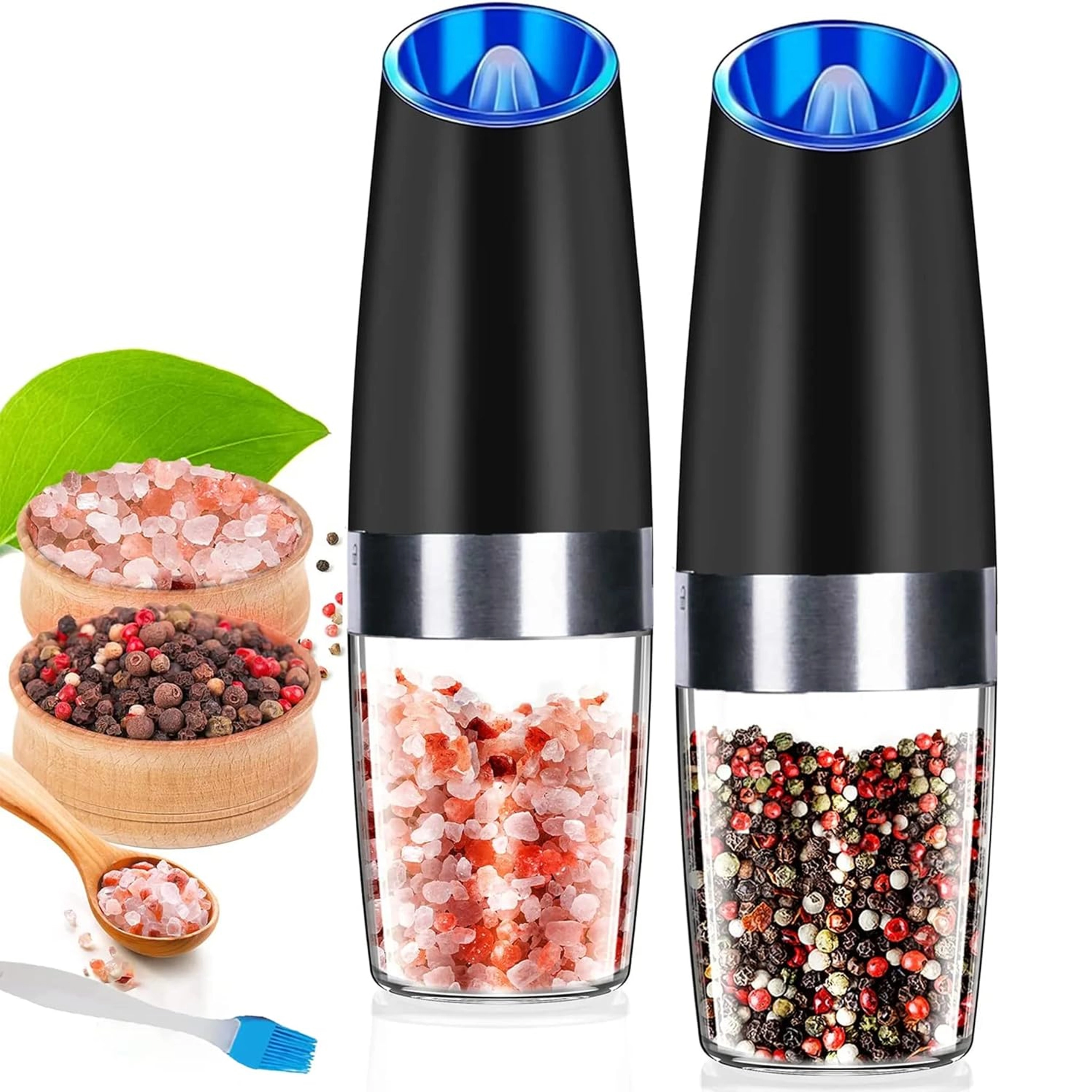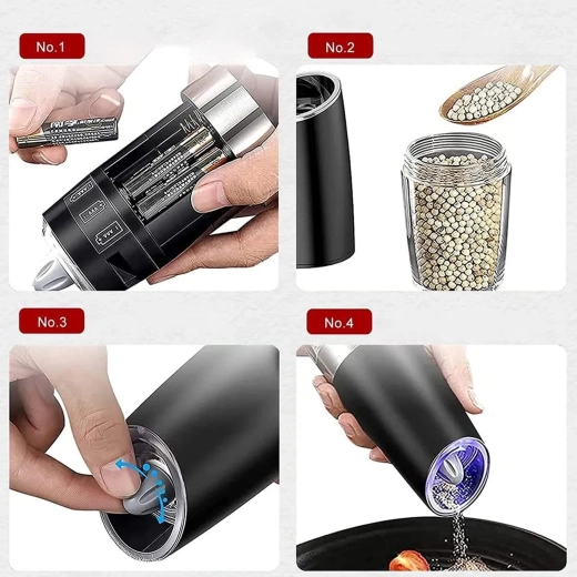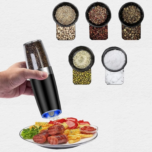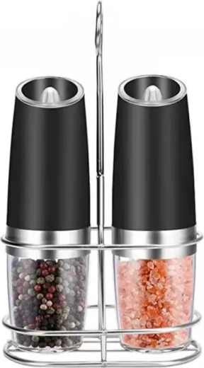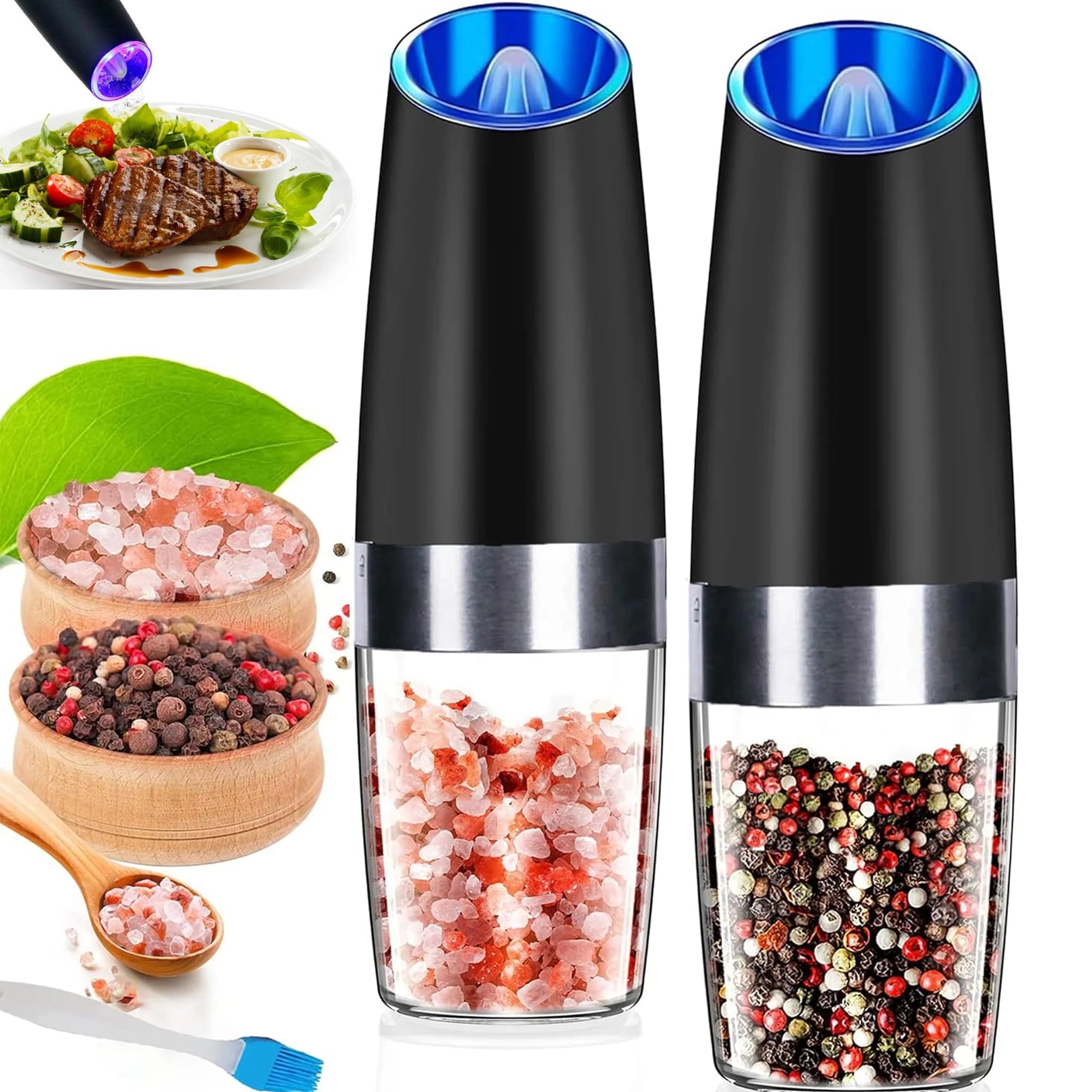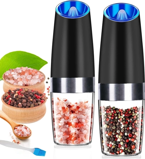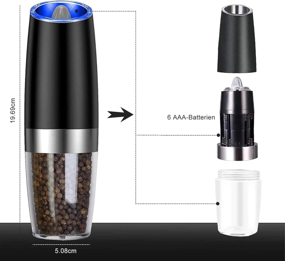 Ontdek het gemak van dagelijks kruiden met een set van twee elektrische zwaartekrachtmolens. Kantel ze en maal direct vers zout, peper of andere kruiden – zonder knoppen in te drukken. De transparante reservoirkamer voor eenvoudig zicht, instelbare maalgraad en geïntegreerde LED-verlichting voor nauwkeurige dosering maken deze molens tot een stijlvolle en praktische aanvulling voor elke keuken. Automatisch malen, bediening met één hand, LED-licht en modern design voor op het aanrecht.