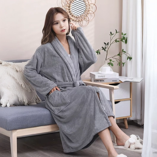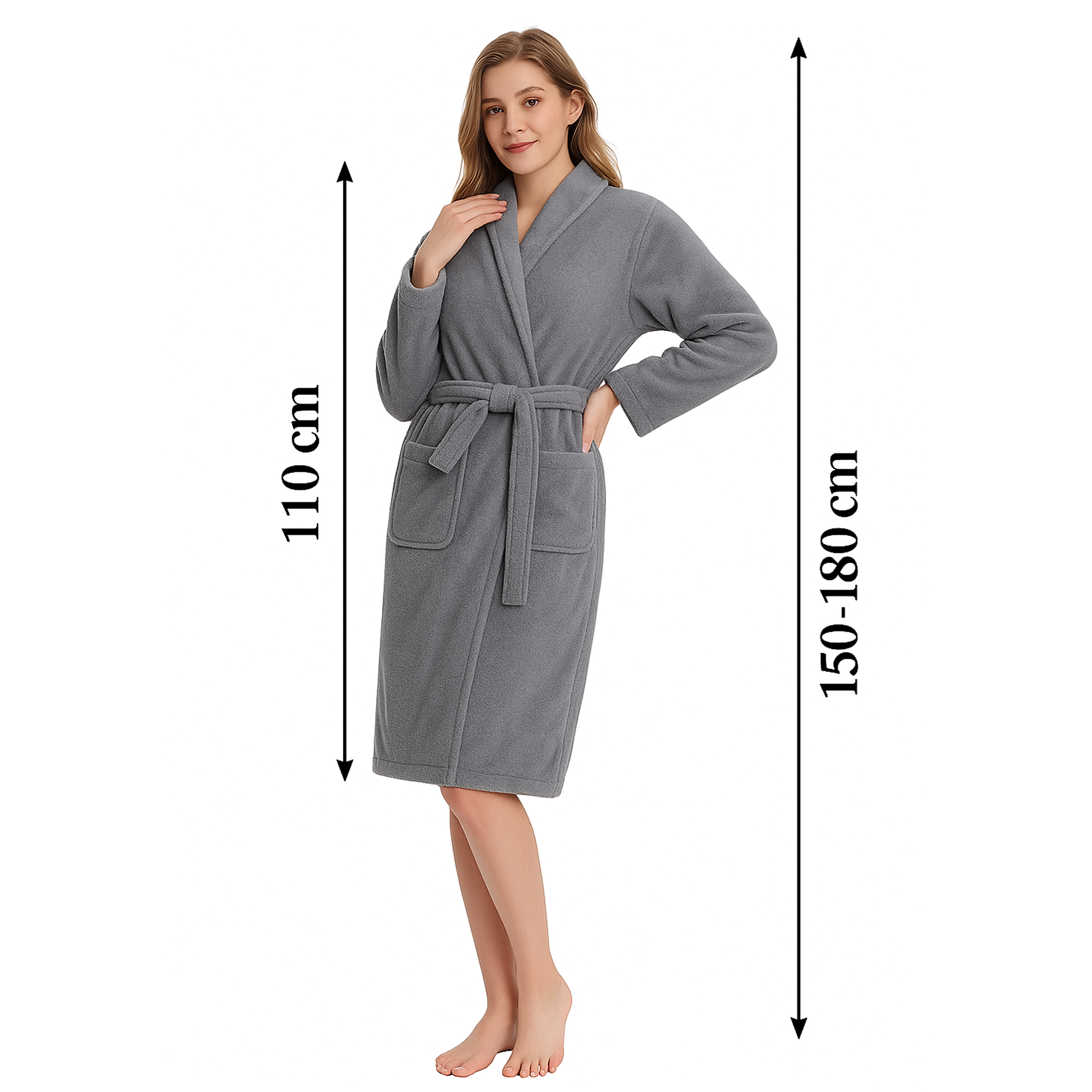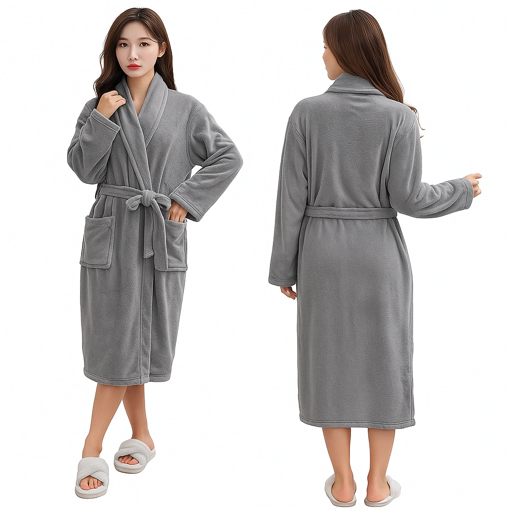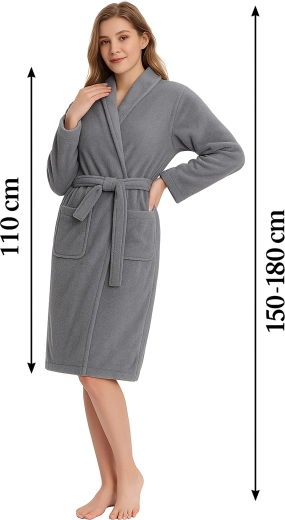 De badjas heeft twee ruime opgestikte zakken voor kleine items en voldoende lengte voor comfortabele bedekking. Dankzij het zachte, warme materiaal is hij een uitstekende keuze voor koele ochtenden en avonden.