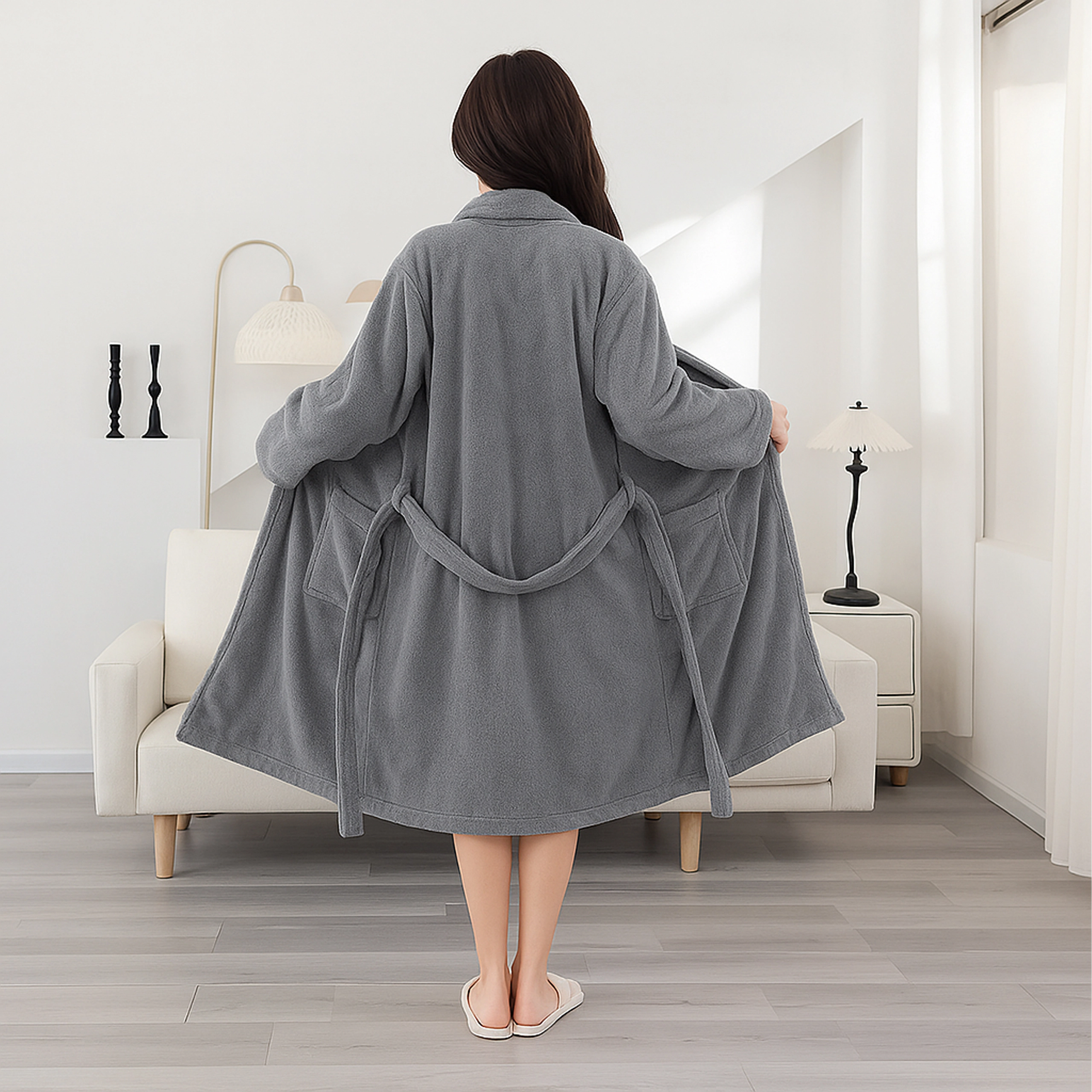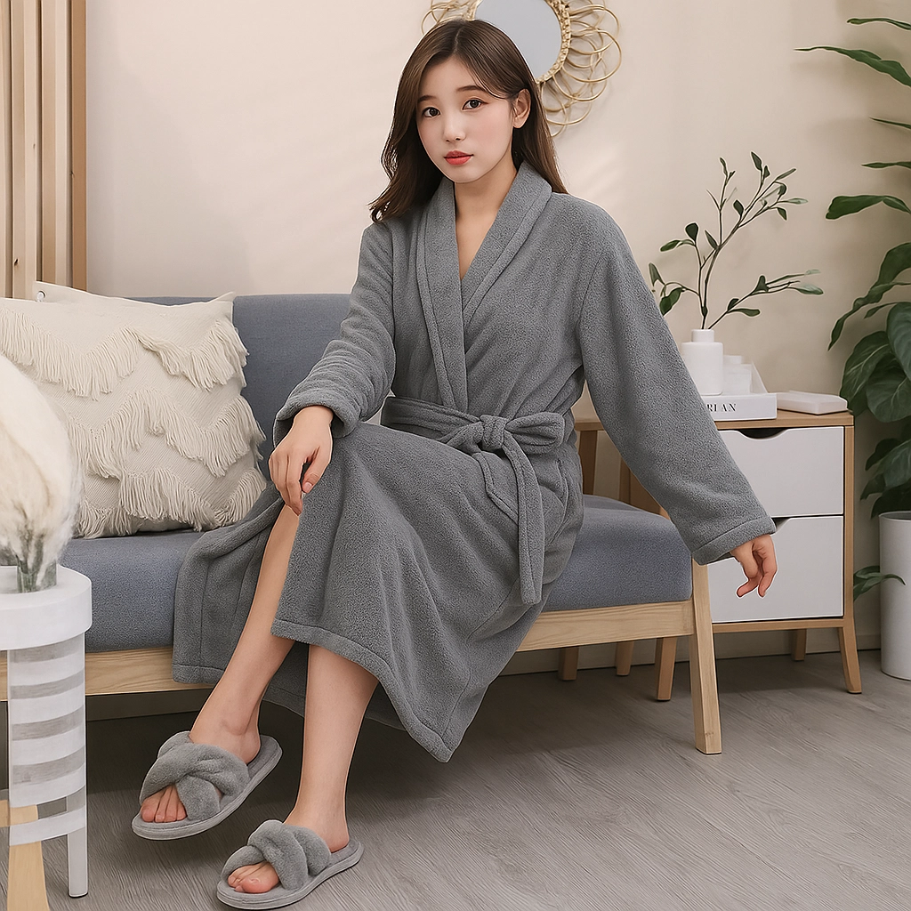 De pluizige stof biedt directe warmte en fluweelzacht comfort na het baden en tijdens het loungen.