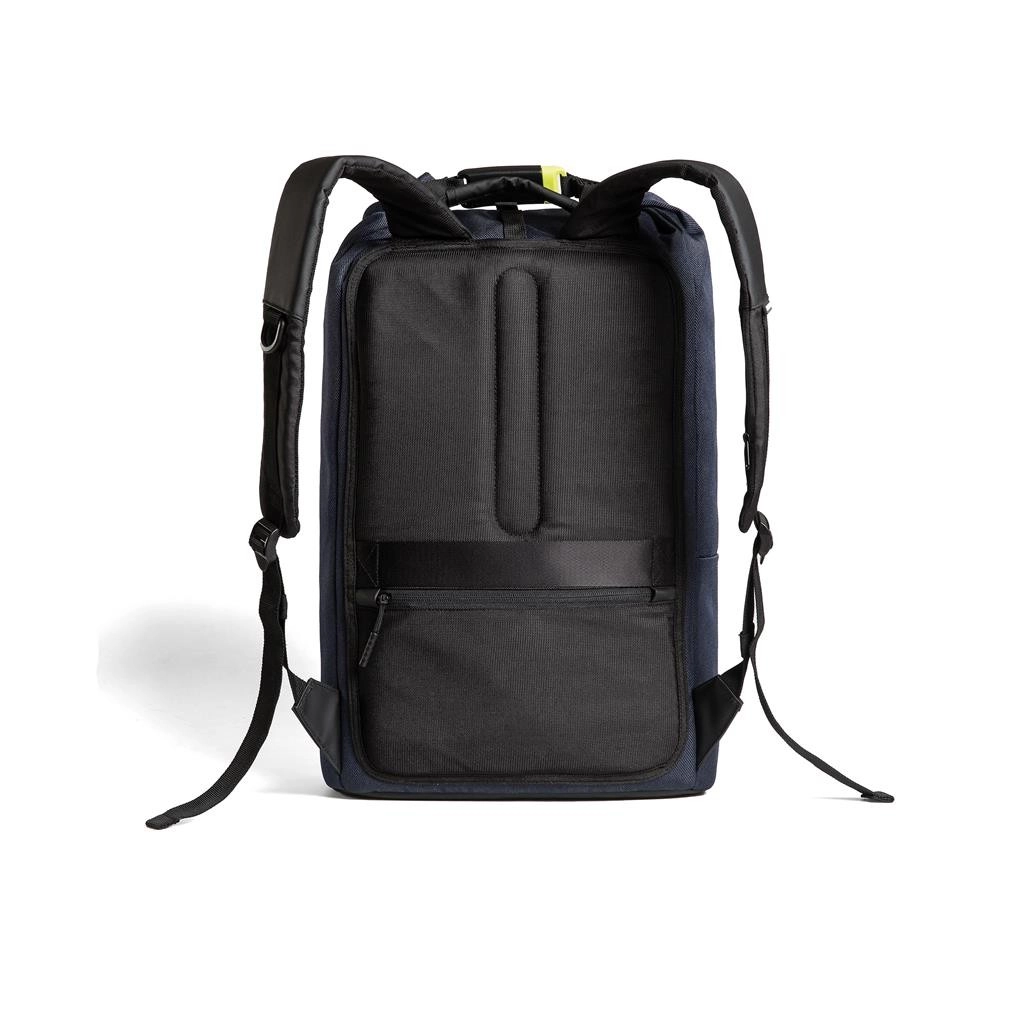 URBAN LITE Navy is een doordachte roll-top rugzak die een minimalistische look combineert met maximale functionaliteit. De stalen sluiting met codeslot en onopvallende verborgen vakken beschermen je waardevolle spullen, terwijl de waterafstotende stof de inhoud veilig houdt bij slecht weer. Reflecterende elementen vergroten de zichtbaarheid bij thuiskomst in de avond.