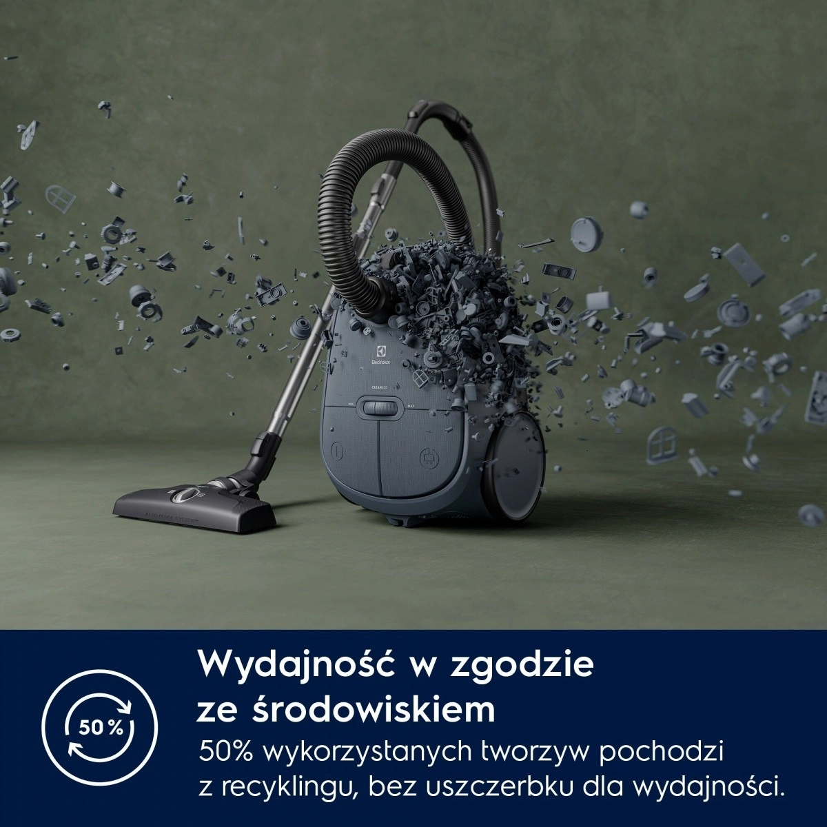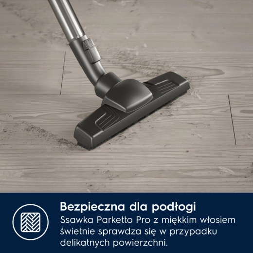 De praktische voetbediening laat je het vermogen wijzigen, het snoer oprollen of aan/uit zetten zonder te bukken. Grote, gemakkelijk wendbare wielen zorgen voor soepele beweging over verschillende vloertypen en het bereik van 12 meter minimaliseert de noodzaak om van stopcontact te wisselen. De stofzuiger is bovendien ecologisch – tot 50% van de kunststoffen is gerecycled en de verpakking is milieubewust.