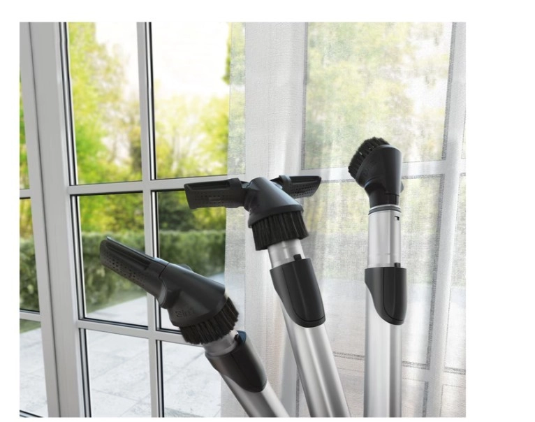 Verandert eenvoudig in een kierenzuiger, zachte stofborstel of meubelmondstuk. Ideaal voor banken, hoeken, plinten en smalle ruimtes.