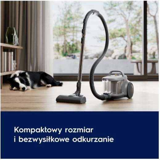 De zakloze stofzuiger uit de 500‑serie is ontworpen voor eenvoudige en hygiënische huishoudreiniging met huisdieren. Dankzij de 100%* stofopname in kieren, de nieuwe AllFloor‑zuigmond en de sterke zuigkracht pakt hij fijn stof en diepzittend vuil aan op verschillende soorten oppervlakken. Het omschakelen van de borstelstand doet u comfortabel met de voet.