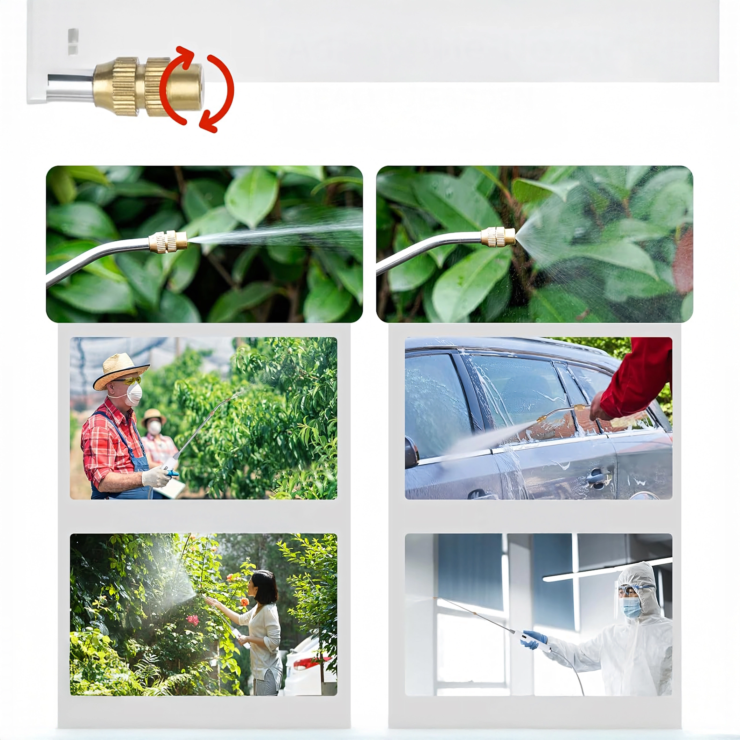 - Universeel gebruik: water geven, benevelen, toedienen van meststoffen en sprays, reinigen en desinfecteren.