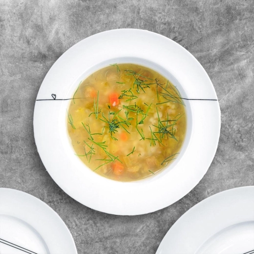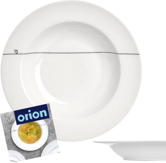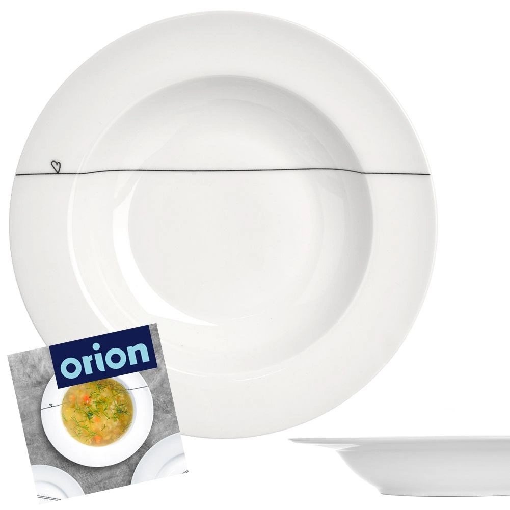 Ontdek een stijlvol en praktisch diep bord dat uitblinkt door de helder witte glazuur en de subtiele versiering in de vorm van een dunne lijn en een klein hartje. Dankzij de diameter van 22 cm en de inhoud van 250 ml is het perfect voor het serveren van soepen, bouillons of crèmes, en net zo geschikt voor pasta of desserts.