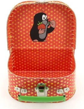 Kinderenkoffertje Mol en aardbeien is ideaal voor elke kleine avonturier. Het is gemaakt van hoogwaardige kartonplaat, bekleed met bedrukt papier met het geliefde motief van het molletje.