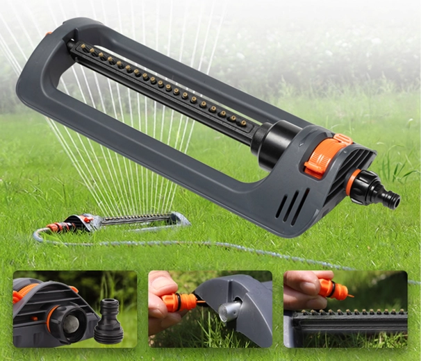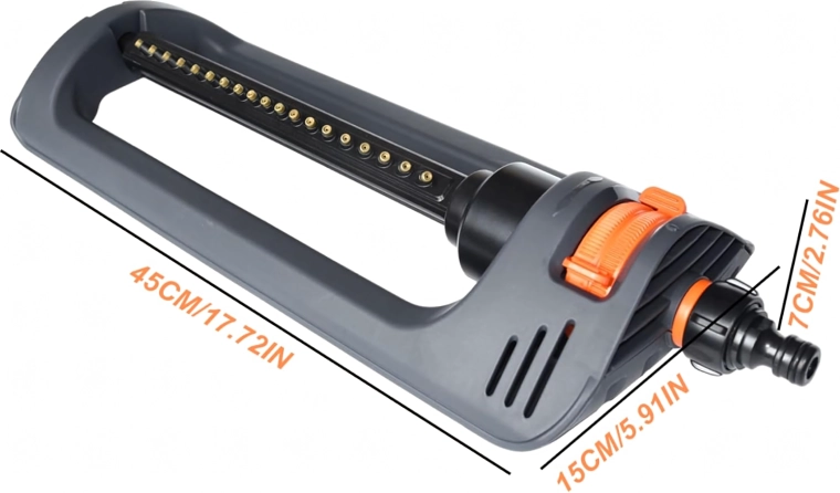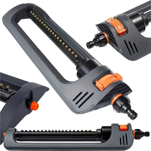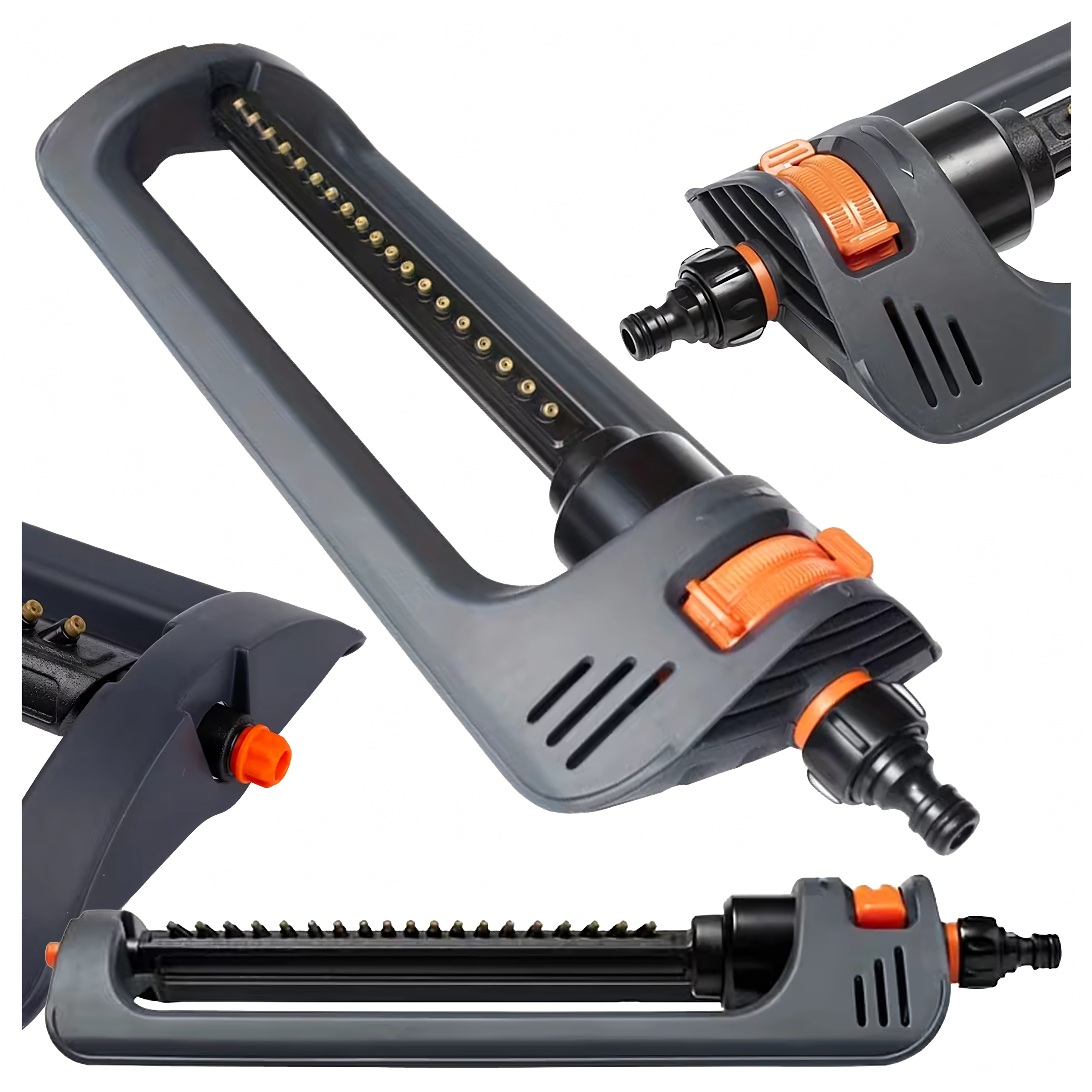 Deze oscillerende sproeier is een betrouwbare oplossing voor regelmatige bewatering van gazons, siervakken en moestuinen. Dankzij 19 precies gepositioneerde sproeiers verspreidt hij water zacht en gelijkmatig over een rechthoekig oppervlak, terwijl de instelbare reikwijdte en oscilleerhoek u in staat stellen de dekking aan de actuele behoeften aan te passen.