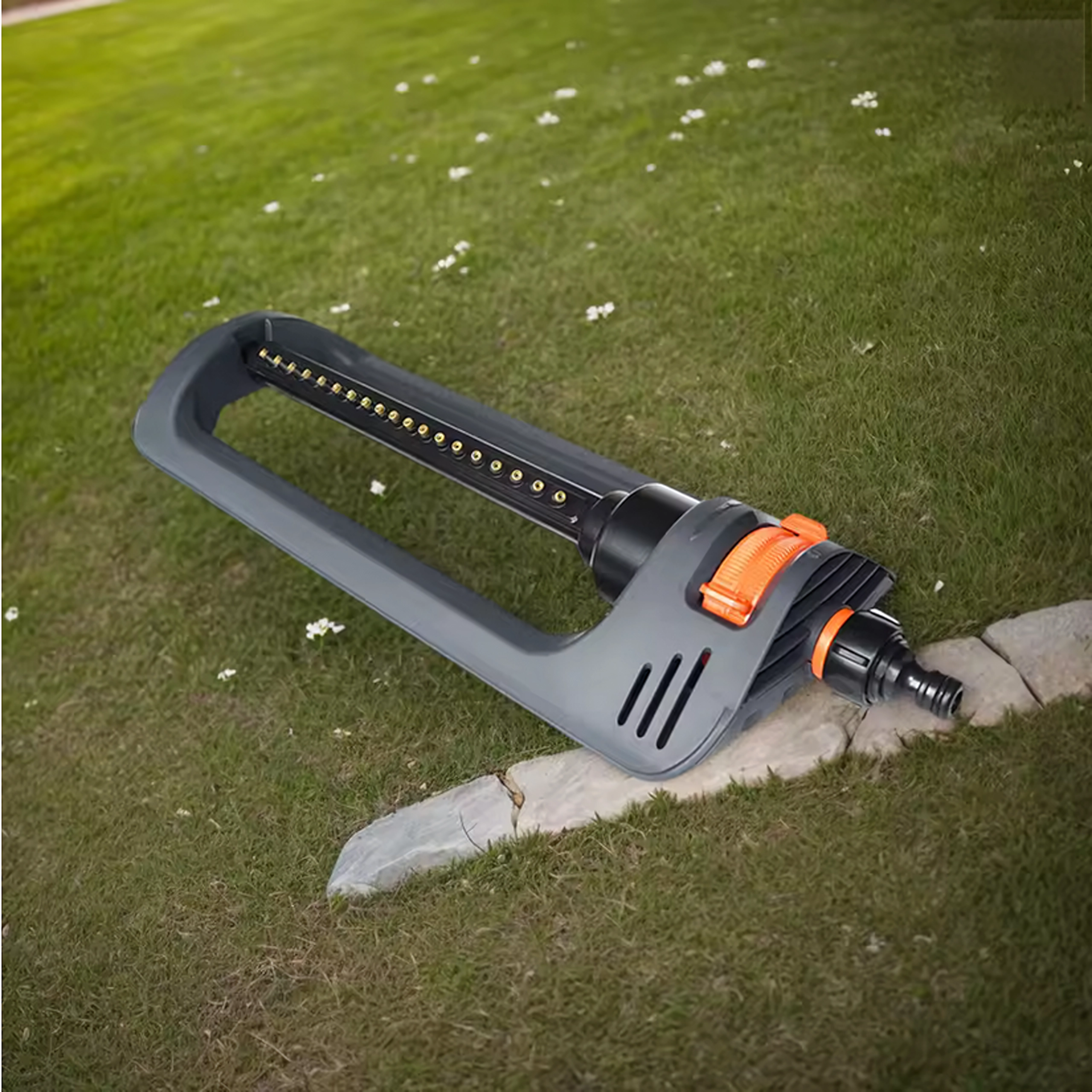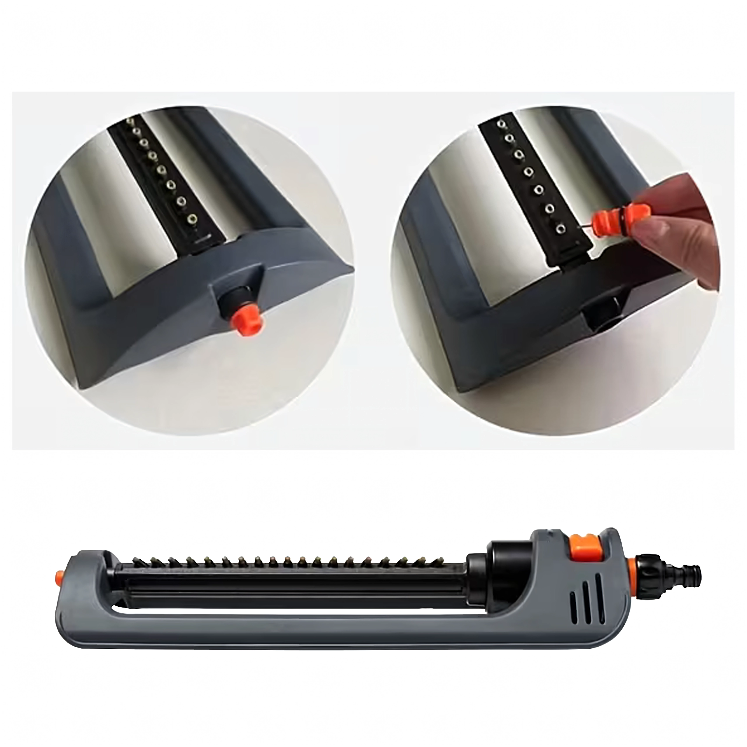 De dichte plaatsing van sproeiers op de oscillerende balk zorgt voor een consistente en zachte waterverdeling zonder overbewatering.