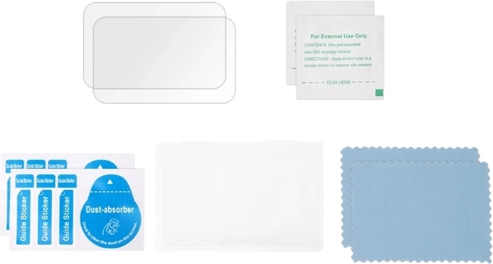 - 2× gehard glas, 2× set stickers voor het verwijderen van stof, 2× reinigingsdoekje, 2× reinigingszakje, opbergdoos