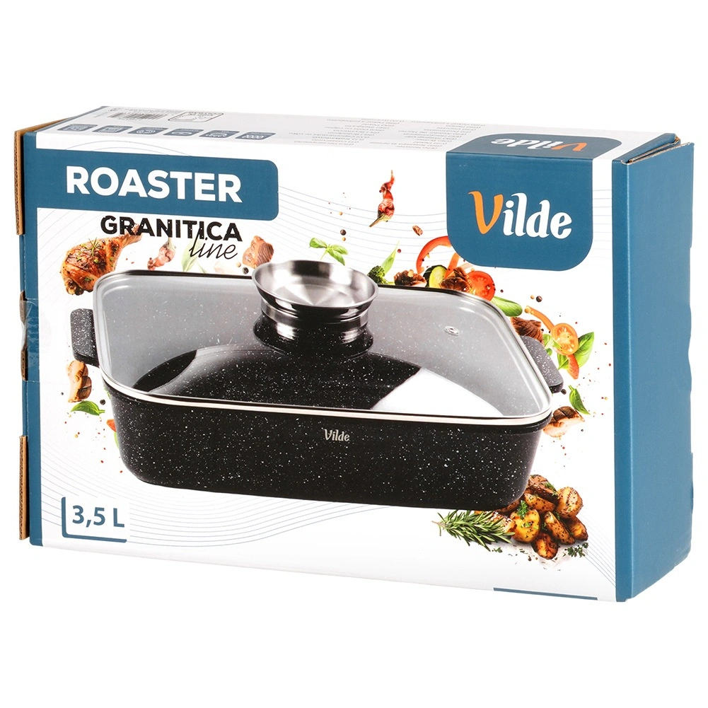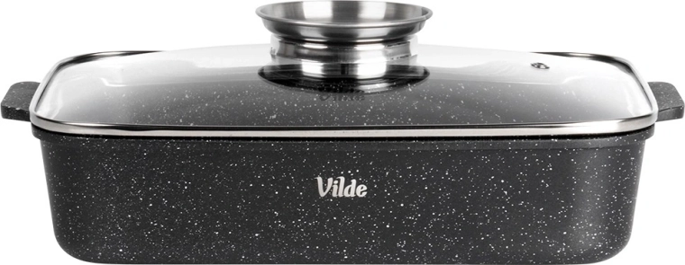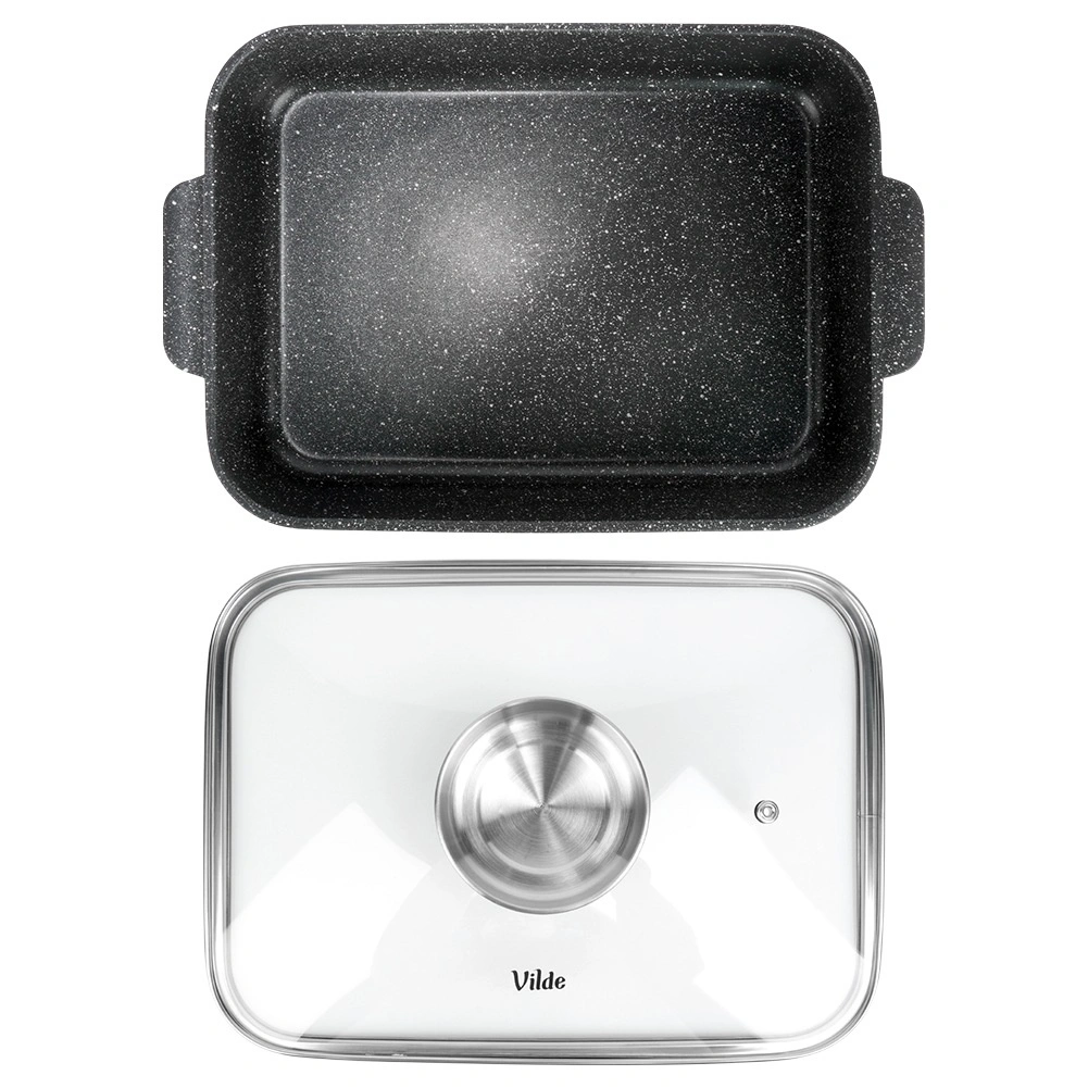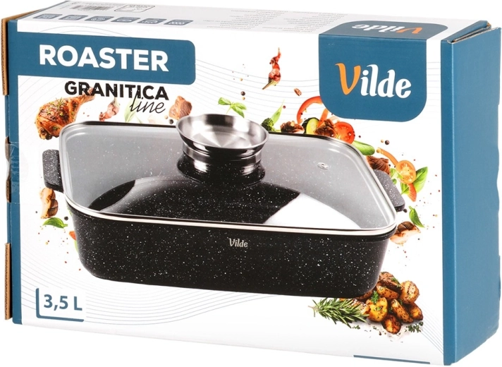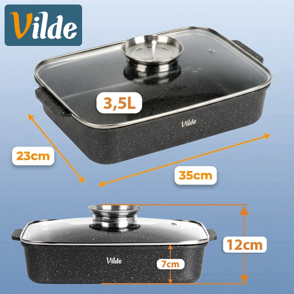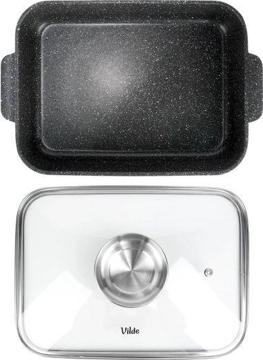 Origineel product van het merk VILDE uit de GRANITICA LINE, geproduceerd volgens Europese normen. Afmetingen met deksel: 35 × 23 × 12 cm, hoogte zonder deksel: 7 cm.