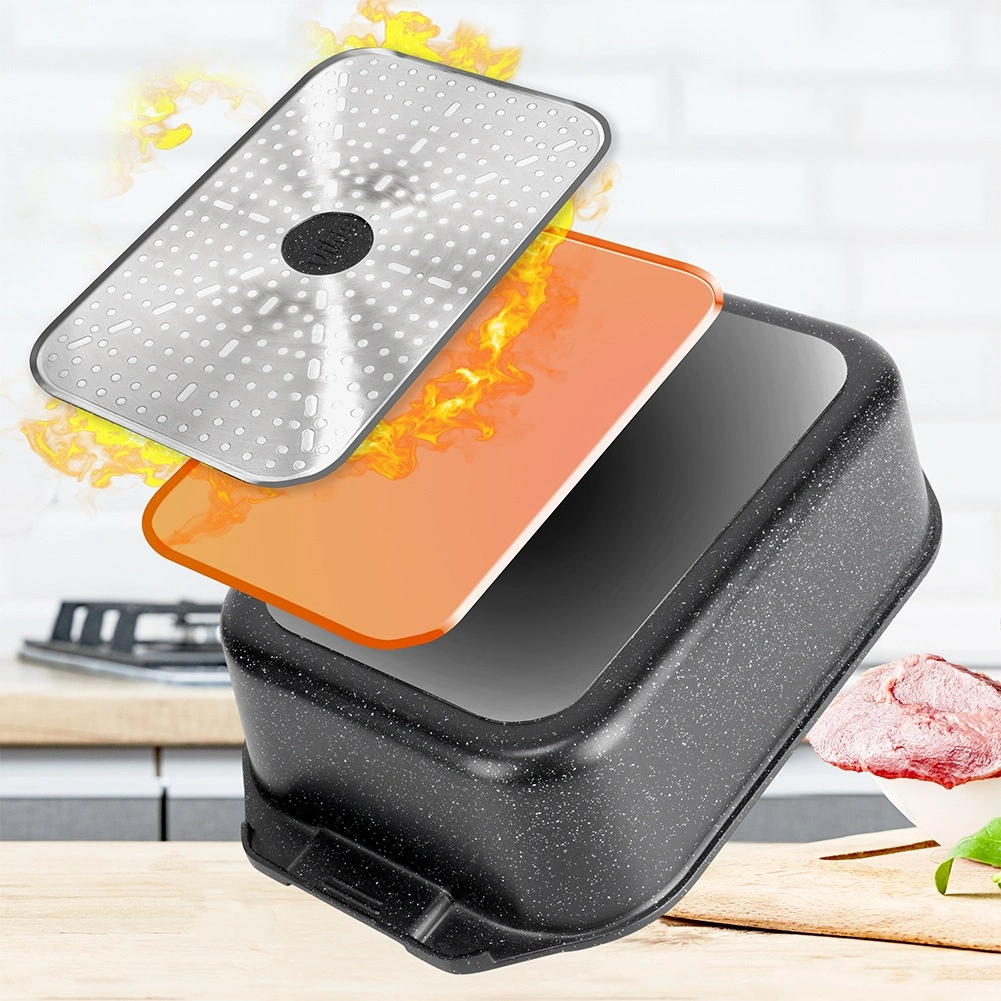 Het granietoppervlak beperkt aanbranden, maakt koken met minder olie mogelijk en vereenvoudigt het schoonmaken aanzienlijk.