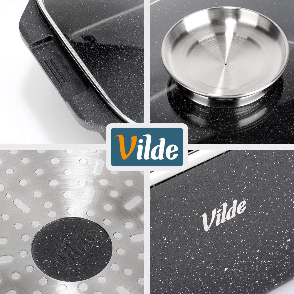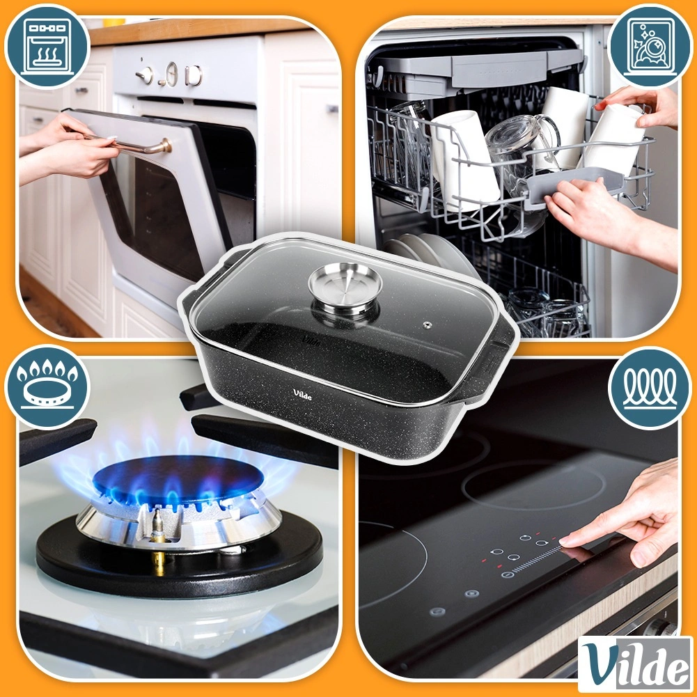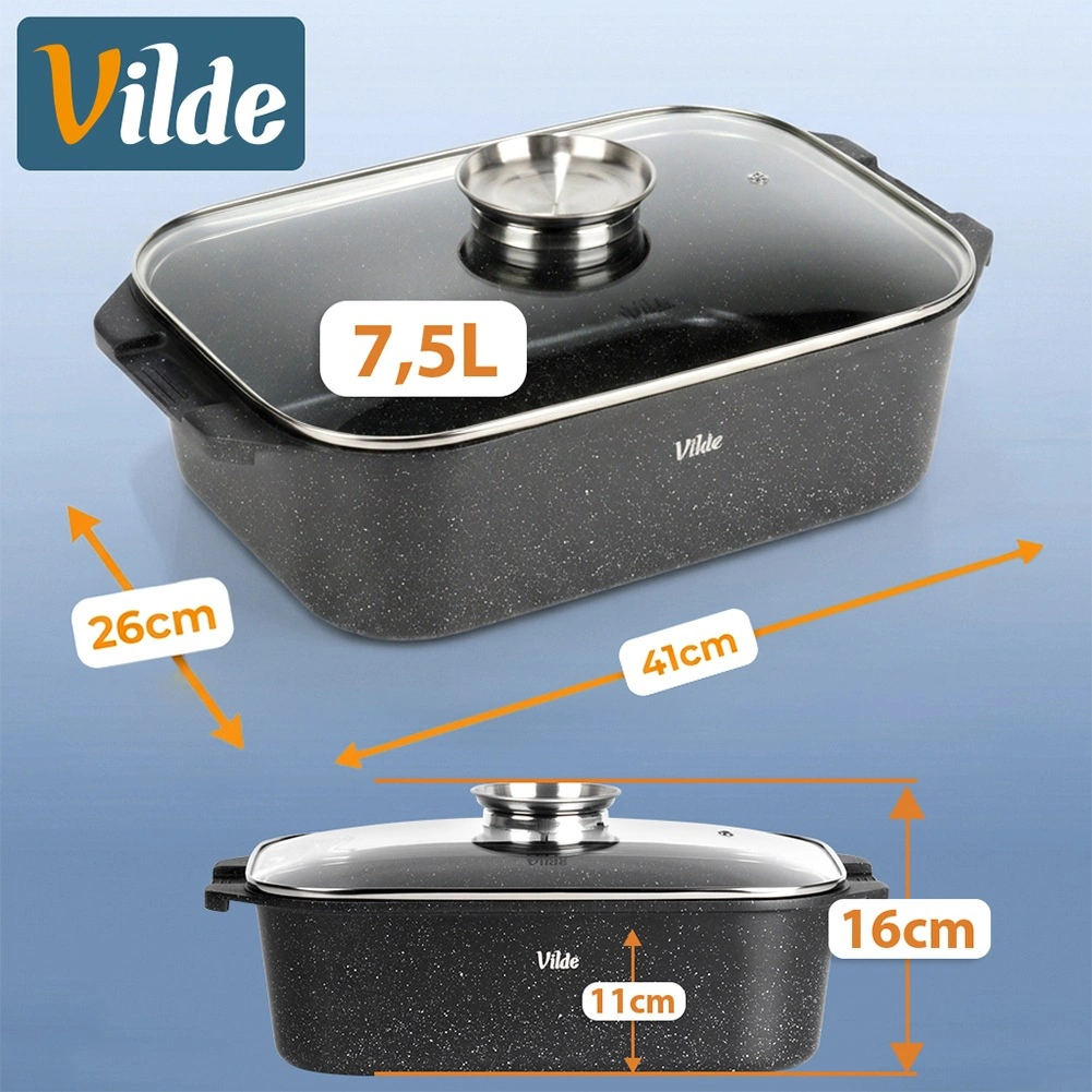 Eenvoudig onderhoud en lange levensduur: het hoogwaardige oppervlak vermindert aanhechten en de hele set kan in de vaatwasser. Origineel product van het merk VILDE uit de GRANITICA LINE, geproduceerd volgens Europese normen.