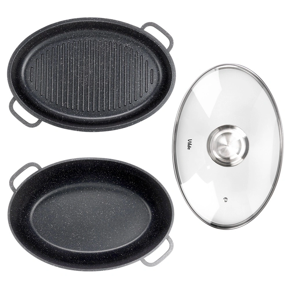 - Ovale 3-in-1 braadslede met grillpan en glazen deksel