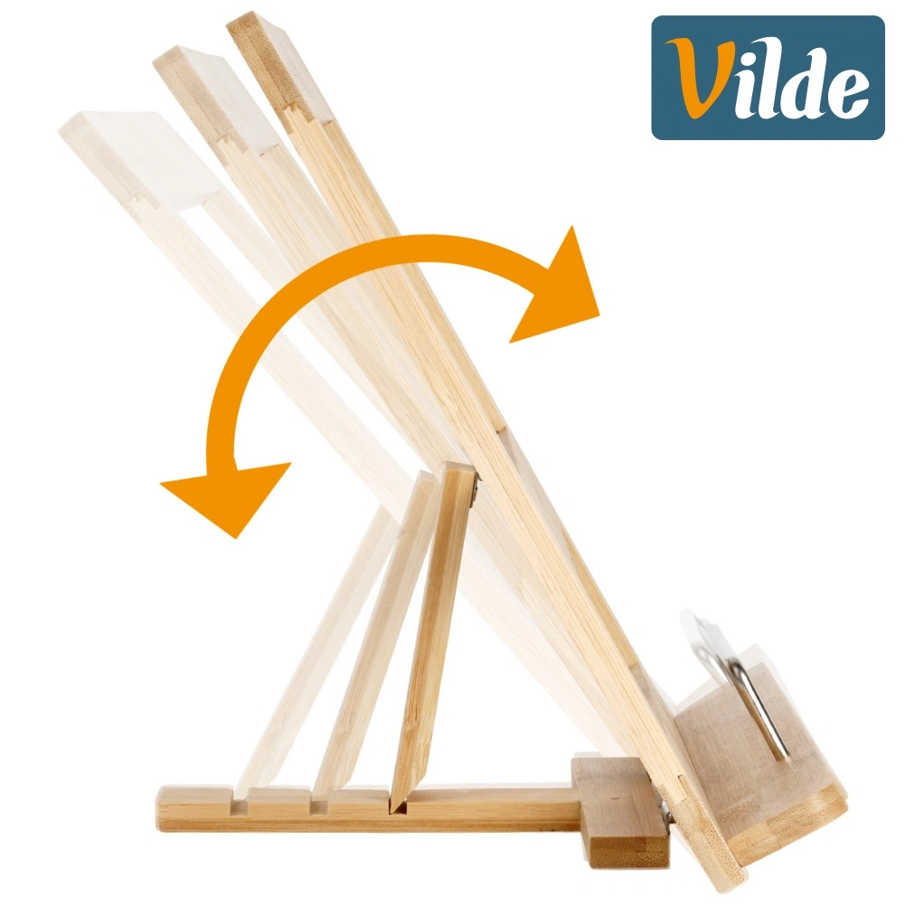 Houd je werkblad opgeruimd en heb recepten altijd bij de hand. Deze elegante standaard van natuurlijk bamboe biedt stabiele ondersteuning voor boeken en apparaten en beschermt dankzij de verstelbare hoek zowel je ogen als je houding tijdens het koken. De metalen strip fixeert pagina’s of tablet betrouwbaar, zodat er niets ongewenst dichtklapt.