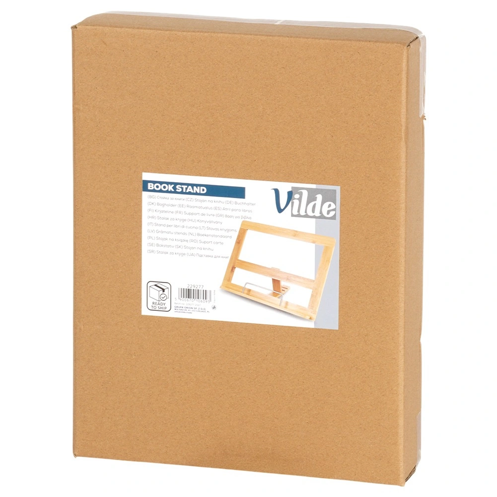 Dankzij het slijtvaste bamboe is de standaard licht, stevig en onderhoudsvriendelijk – bamboe is van nature bestand tegen vocht en neemt geen geuren op. De opvouwbare constructie vergemakkelijkt transport en opslag, zodat je de standaard snel in een lade kunt opbergen of tussen je kookboeken kunt plaatsen.