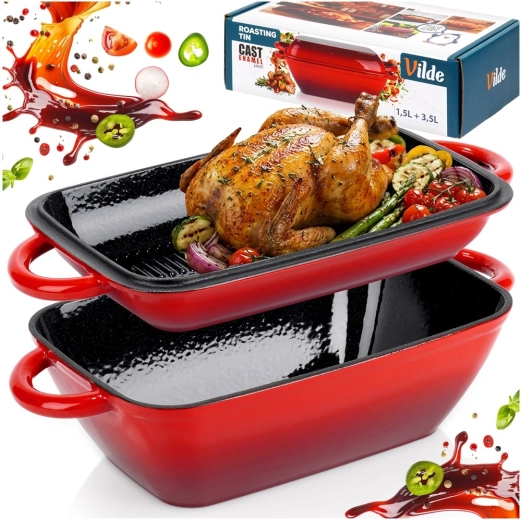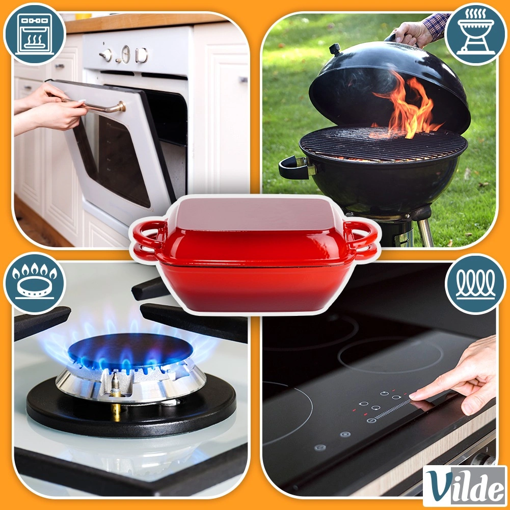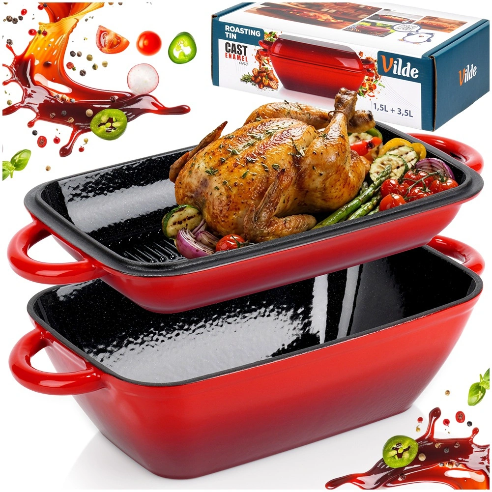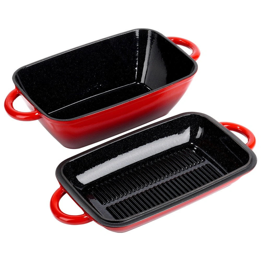 - Gietijzeren geëmailleerde braadslede-set 2-in-1