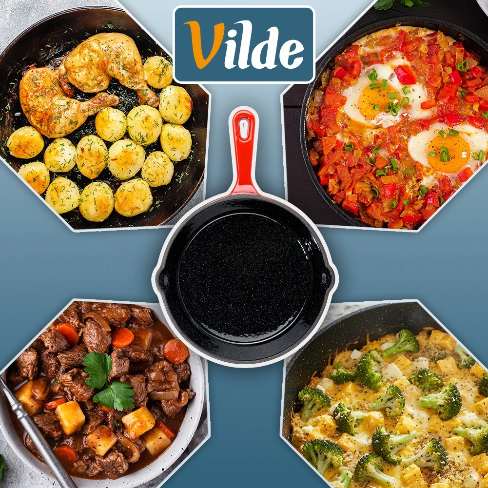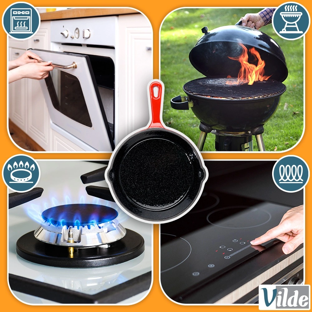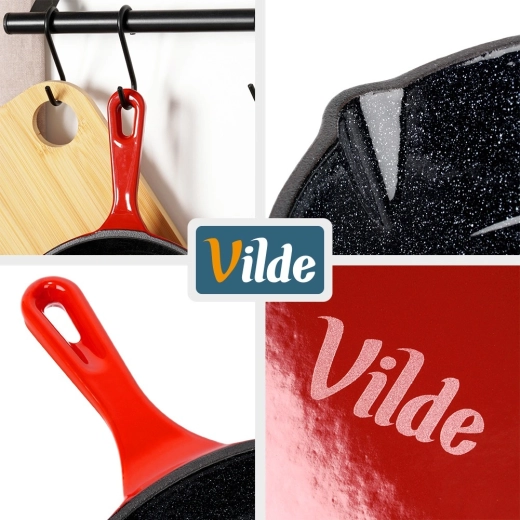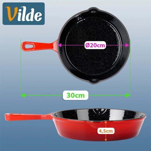 Universeel inzetbaar in de keuken, op de grill en boven open vuur, waardoor deze pan een geweldige partner is thuis en onderweg. De stevige uitvoering en tijdloze vormgeving in het rood benadrukken de kwaliteit van het merk VILDE uit de CAST ENAMEL-lijn.