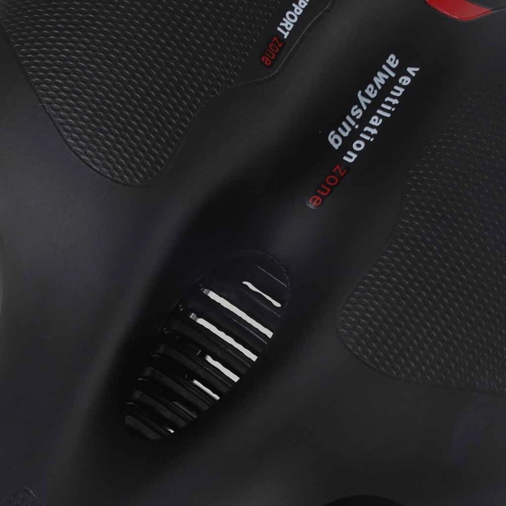 Het centrale ventilatiekanaal verlicht de druk in gevoelige zones en verbetert de luchtstroom voor meer comfort tijdens langere ritten.