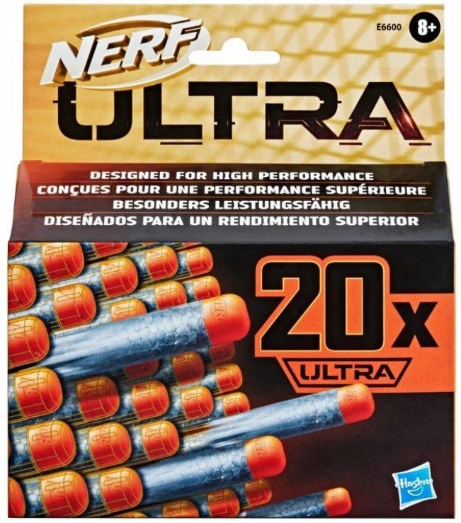 Vul je uitrusting aan voor eindeloze actie met een verpakking van 20 NERF ULTRA-pijlen. Deze kwalitatieve pijlen van HASBRO zijn ontworpen voor maximaal bereik en precisie, ideaal voor kinderen vanaf 8 jaar. De compacte verpakking is makkelijk mee te nemen, zodat je plezier hebt in de tuin, het park of op het strand.