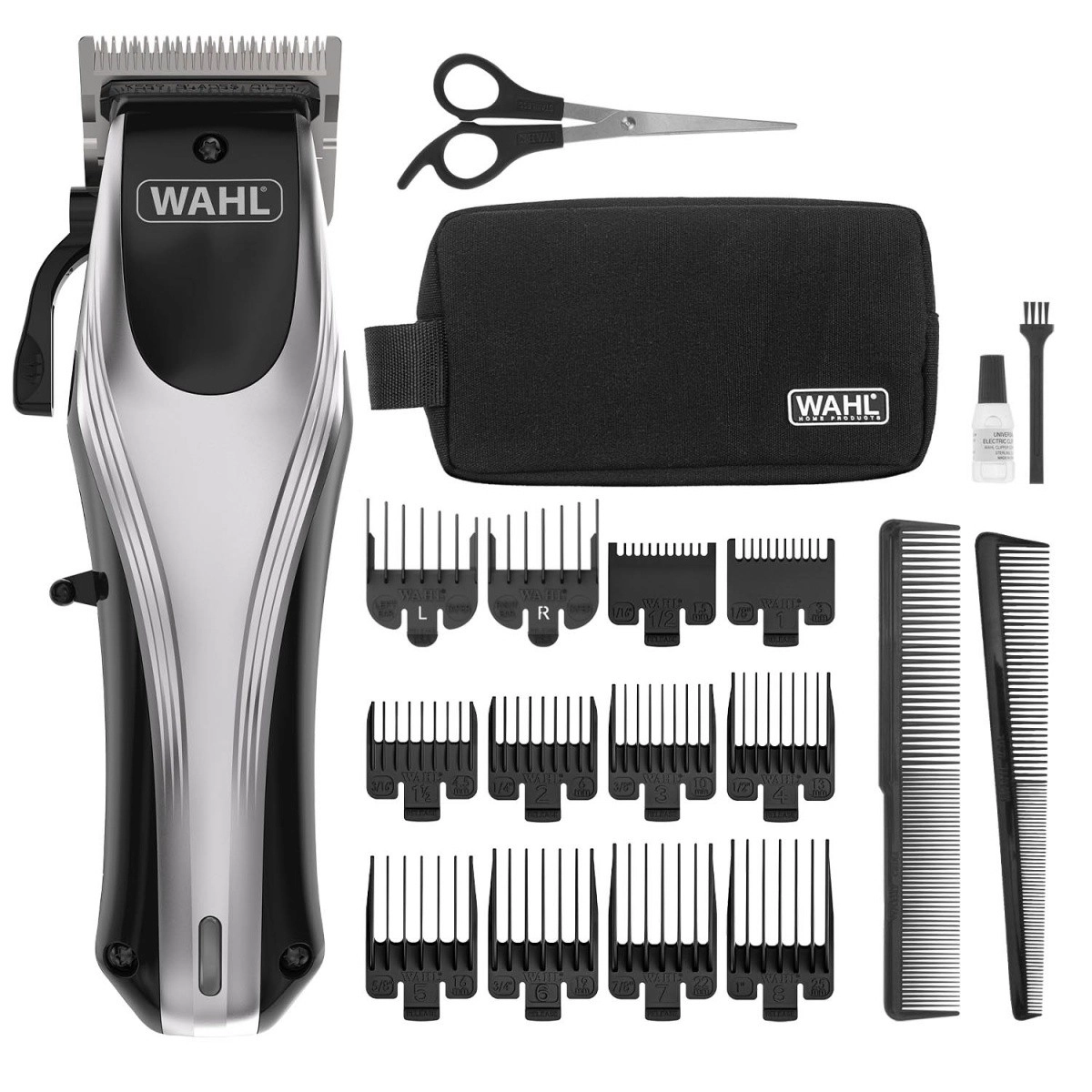 - Geleidekammen in diverse lengtes, ooropzetstukken, schaar, kammen, etui, olie en borsteltje (afhankelijk van verpakking)