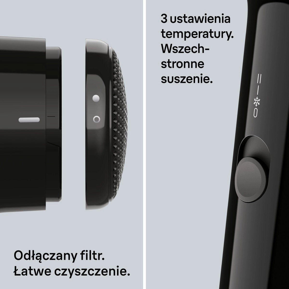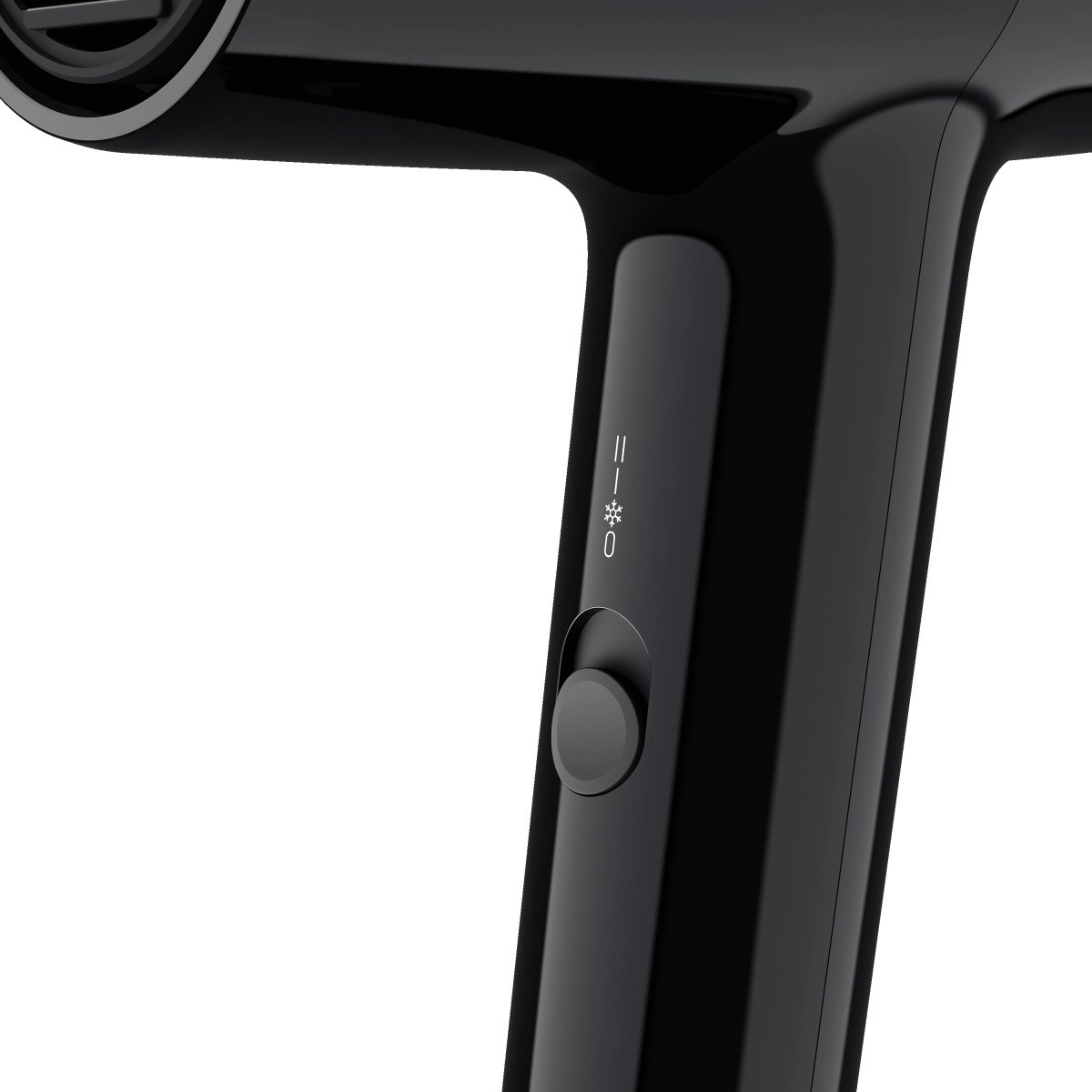 De ergonomische handgreep en overzichtelijke bediening maken het gebruik eenvoudig, en meerdere standen voor luchtstroom en temperatuur laten je het drogen afstemmen op jouw haartype. De koelstand helpt het eindresultaat te fixeren en extra glans te geven.