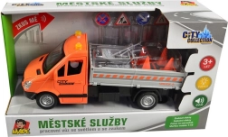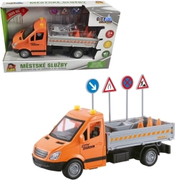 Deze oranje truck met laadplatform en neerklapbare oprijplaten biedt kinderen een authentieke ervaring van stadsdiensten en wegwerkzaamheden. De vliegwielaandrijving zorgt voor een soepele rit zonder batterijen, terwijl realistische details en accessoires de verbeelding en fijne motoriek stimuleren.