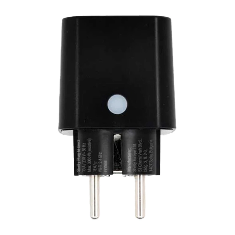 De slimme stekker Shelly Plug M Gen3 biedt Matter-compatibiliteit, Wi‑Fi en Bluetooth-verbinding en energiebewaking in real time. Hiermee kunt u apparaten op afstand bedienen, automatiseren met schema’s en timers, en genieten van een veilige werking met oververhittingsbeveiliging en een vermogen tot 3000 W (13 A) – zonder hub.