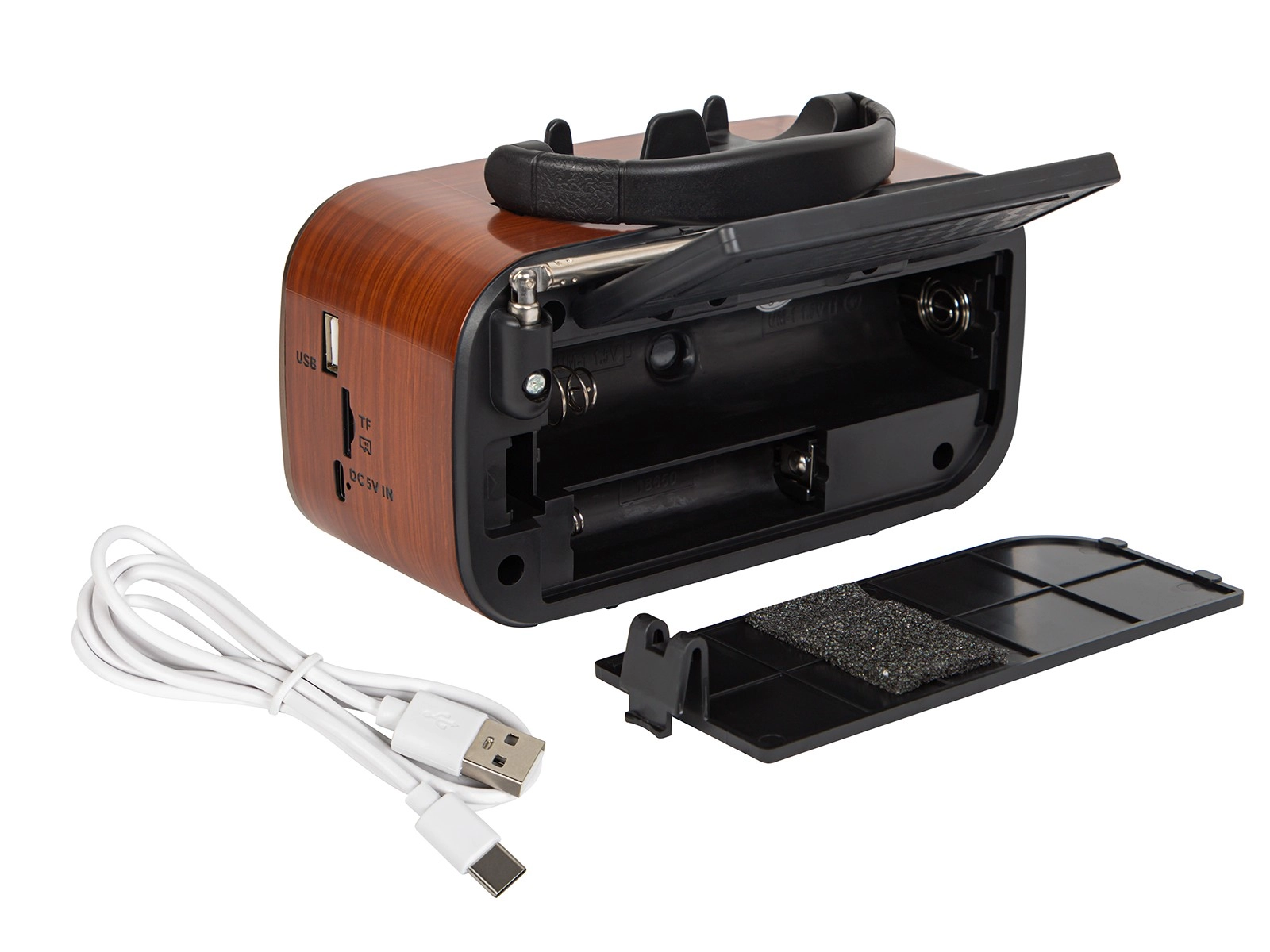 Maximale flexibiliteit dankzij vier voedingsopties – via het lichtnet, de ingebouwde accu, traditionele batterijen en het geïntegreerde zonnepaneel. Inclusief USB-poort en microSD/TF-kaartlezer voor het afspelen van bestanden en een praktische powerbankfunctie om je telefoon op te laden. Eenvoudige bediening, nauwkeurige afstemming en afgestemd geluid voor prettig luisteren binnen en buiten.