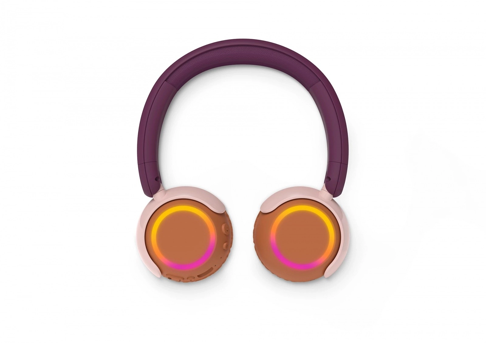 Kleurrijke LED-ringen op de oorschelpen fleuren elke dag op. Draadloos delen maakt het mogelijk dat twee kinderen gelijktijdig naar dezelfde content luisteren.