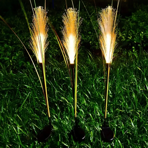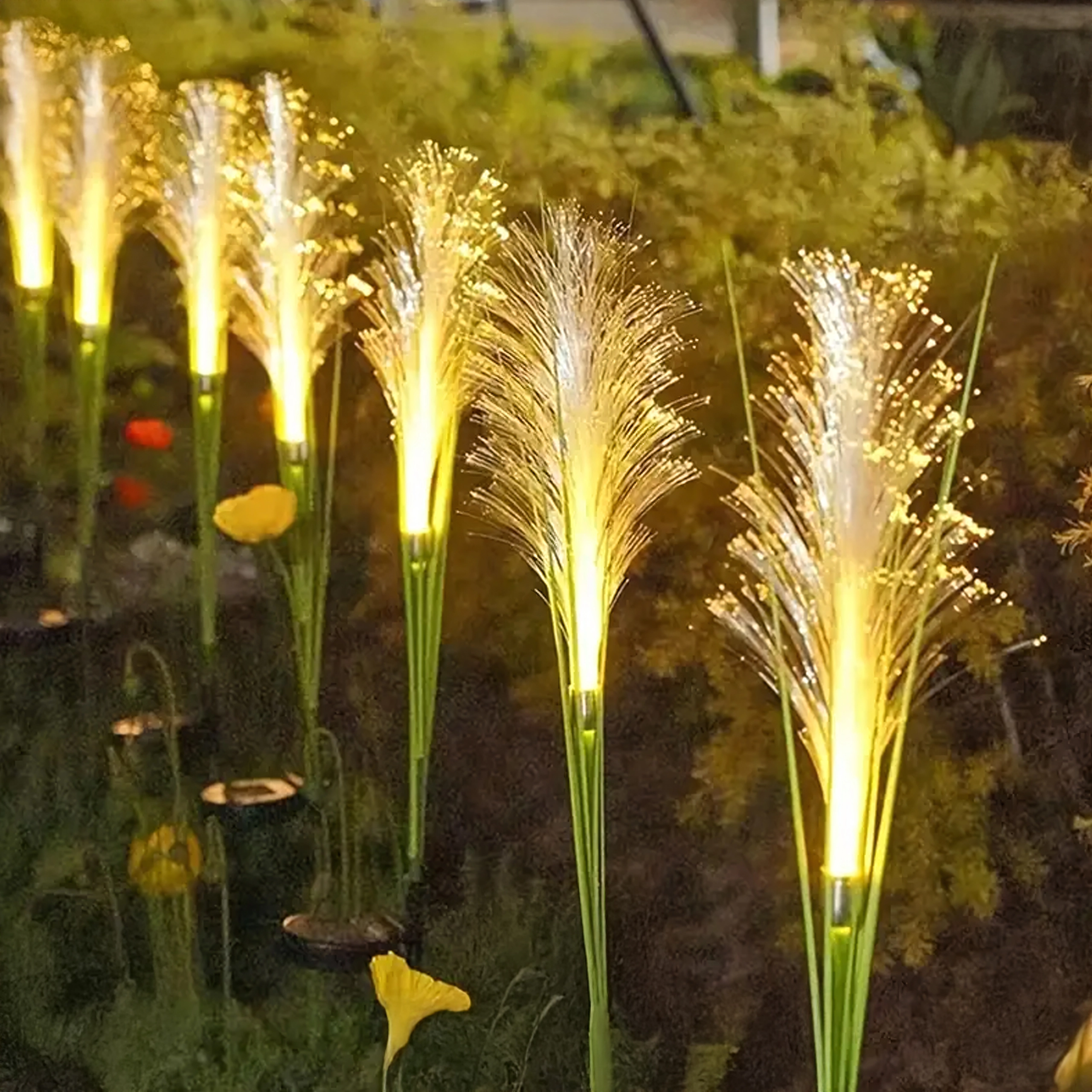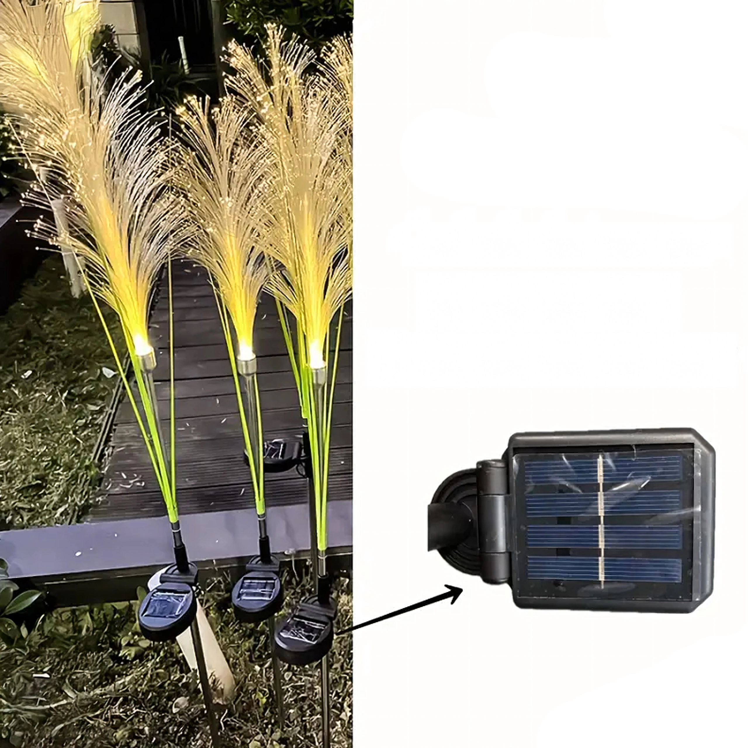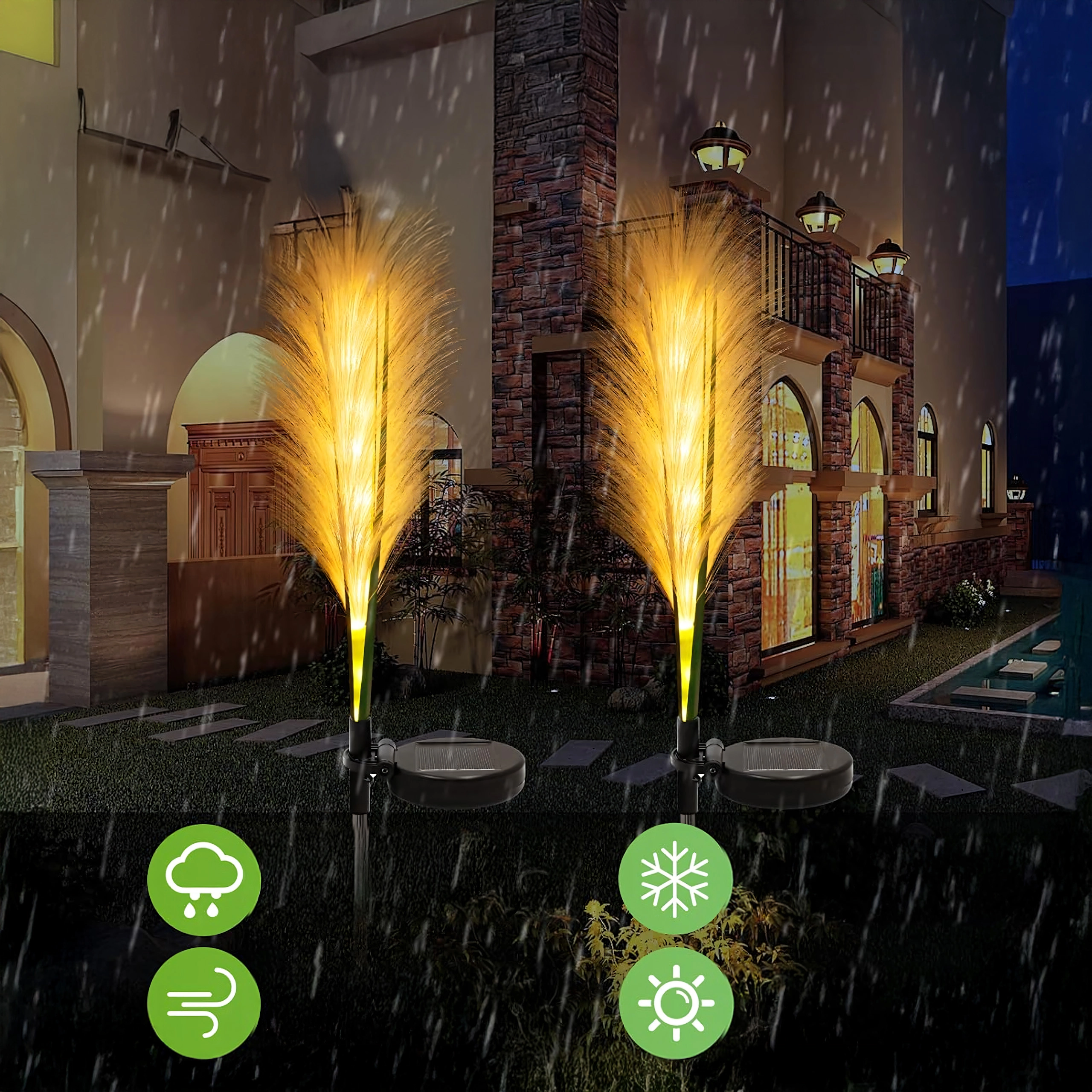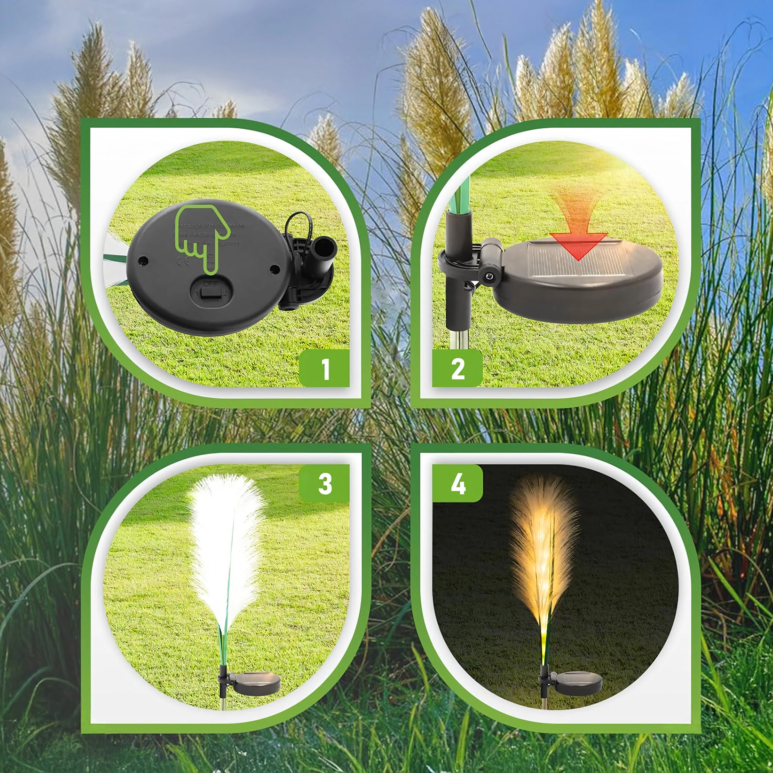 Breng een betoverende sfeer in je tuin met zonnelampen in de vorm van pampagras. Elegant warm licht, automatische inschakeling bij schemering, zonder kabels en netstroom en eenvoudige installatie door in de grond te prikken – ideaal langs paden, in borders en op het gazon.