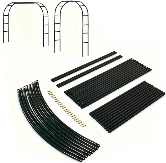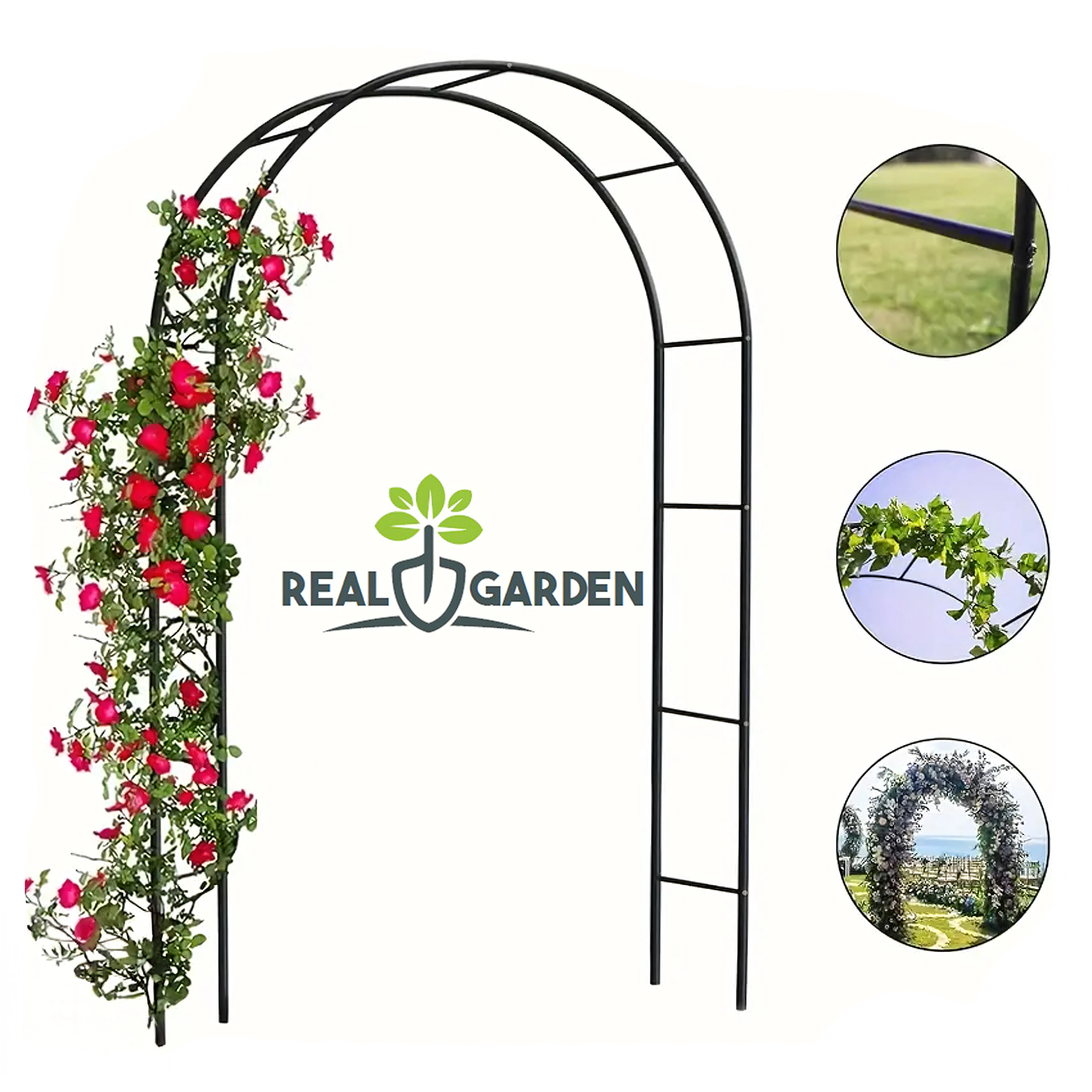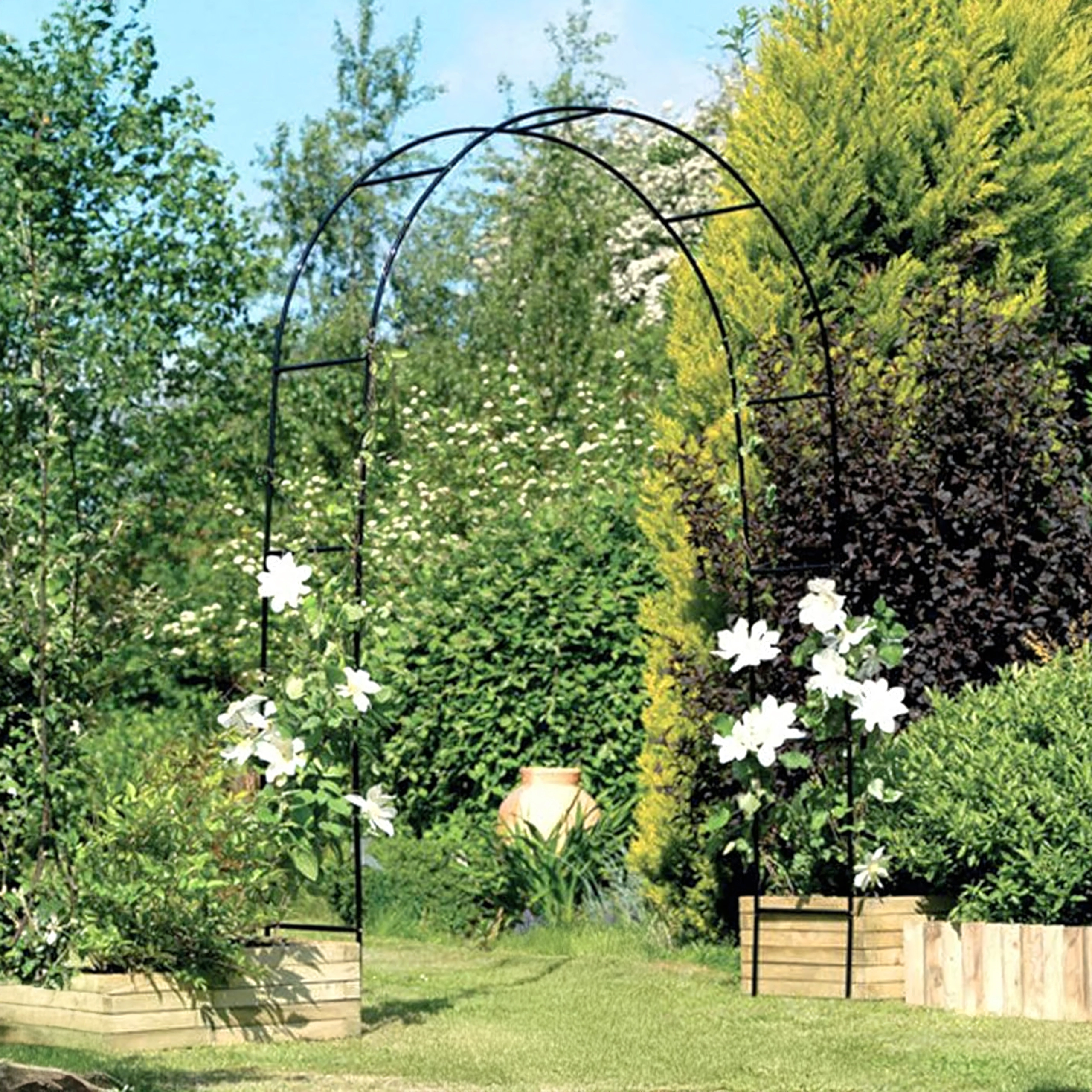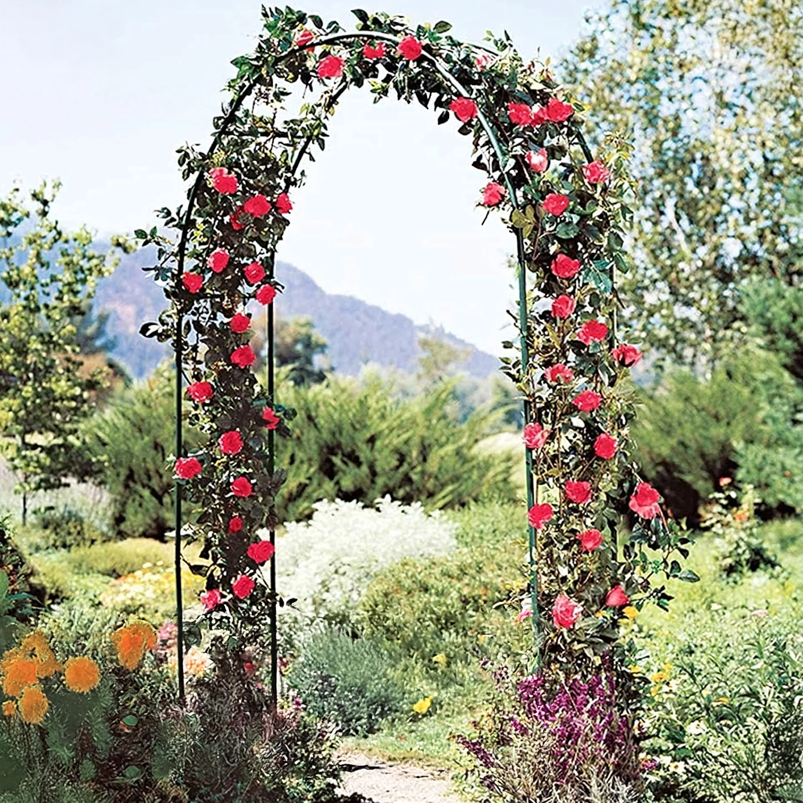 Een elegante tuinboog van duurzaam metaal creëert een indrukwekkende entree in de tuin en biedt een stevige ondersteuning voor rozen, wijnranken en clematis. Eenvoudige montage met buissegmenten en een universeel ontwerp voor decoraties, trouwpoorten en klimplanten.