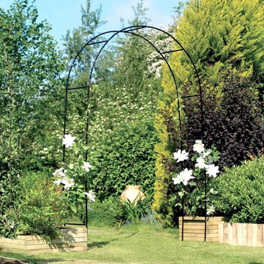 Het stabiele frame draagt veilig rozen, wijnranken en sierlianen en vormt een opvallend tuinelement.