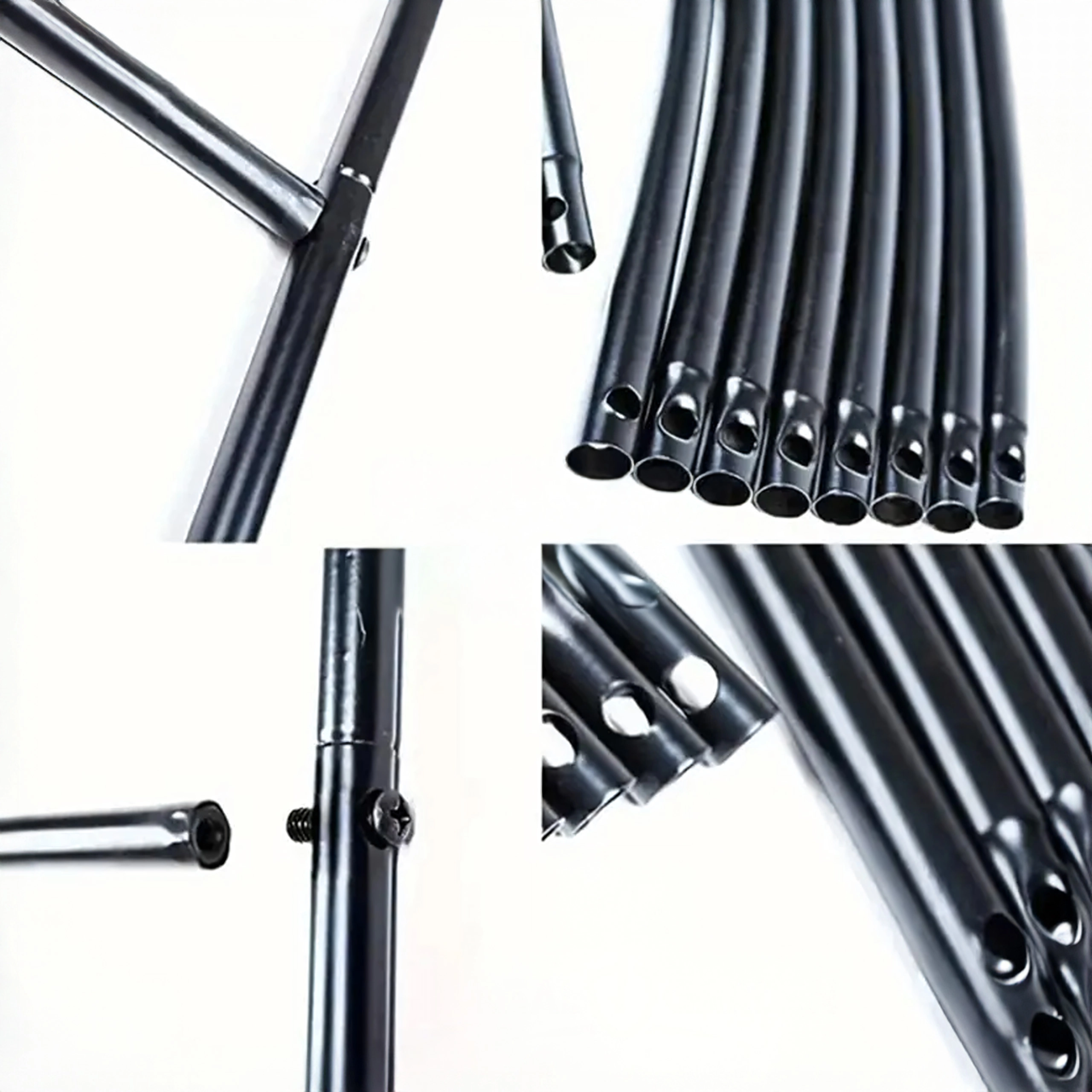 Dankzij het modulaire buizensysteem is de montage snel en intuïtief. De minimalistische zwarte look past in moderne én klassieke tuinen, bij bruiloften en tuinfeesten. Plaats de poten in de grond of in stevige plantenbakken en laat de planten omhoog groeien.