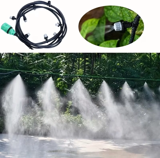 De sproeikoppen creëren een gelijkmatige nevel die het blad niet belast en een optimaal microklimaat voor planten behoudt. Ideaal voor kassen, borders en terrassen.