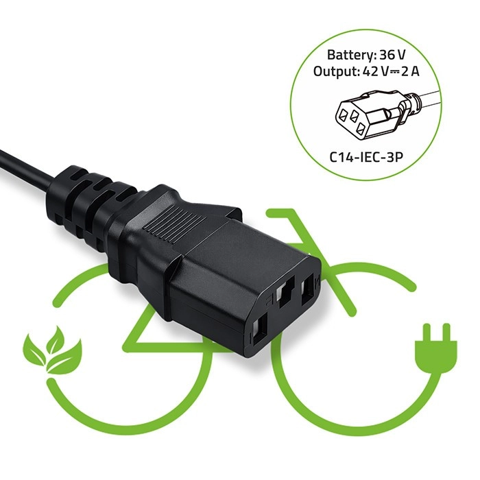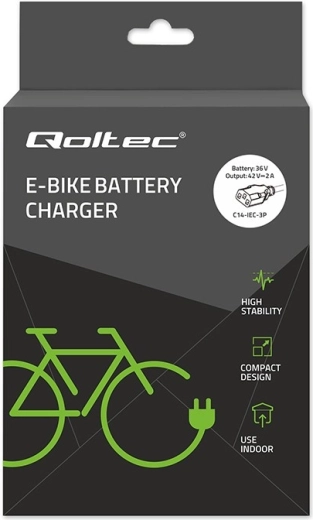 De compacte Qoltec‑lader voor e‑bikes levert een uitgang van 42 V / 2 A (84 W) voor 36 V Li‑ion accu’s. Dankzij de C14 IEC 3‑pins connector en voeding via een standaard 230 V stopcontact is hij ideaal voor thuis en onderweg. De lader biedt hoge veiligheid, betrouwbaarheid en efficiënte koeling, heeft LED‑laadindicatie en een IP54‑bescherming tegen stof en spatwater.