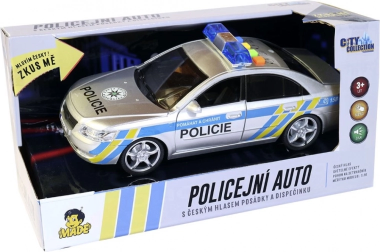 De politieauto van MaDe geeft kinderen de kans om deel te nemen aan de actie met dank aan Tsjechische stemcommando's van de bemanning en de dispatching. Deze auto met geluids- en lichteffecten is de droom van elke kleine politieagent.