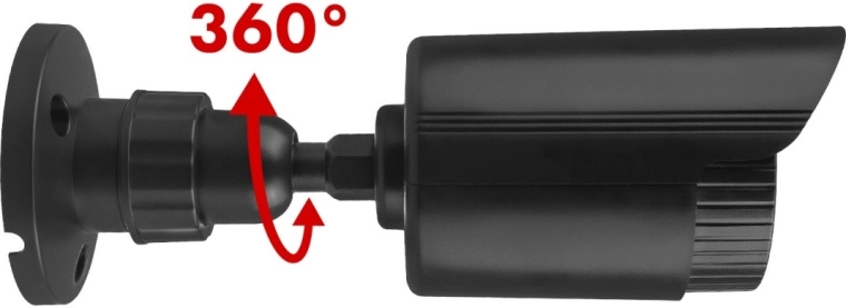 De installatie is snel en eenvoudig; de voeding gebeurt met standaard 2× AA‑batterijen. De neutrale, moderne uitstraling past in de meeste omgevingen en creëert de realistische illusie van een professioneel camerasysteem.