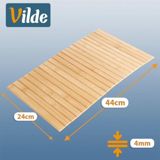 Deze bamboe onderlegger van 44 × 24 cm is een veelzijdige helper voor keuken en woonkamer. Natuurlijke bamboe geeft het interieur een luchtige, moderne look, terwijl de stevige lamellen oppervlakken betrouwbaar beschermen tegen warmte, vocht en krassen. Dankzij het flexibele ontwerp pas je hem gemakkelijk aan verschillende oppervlakken aan.