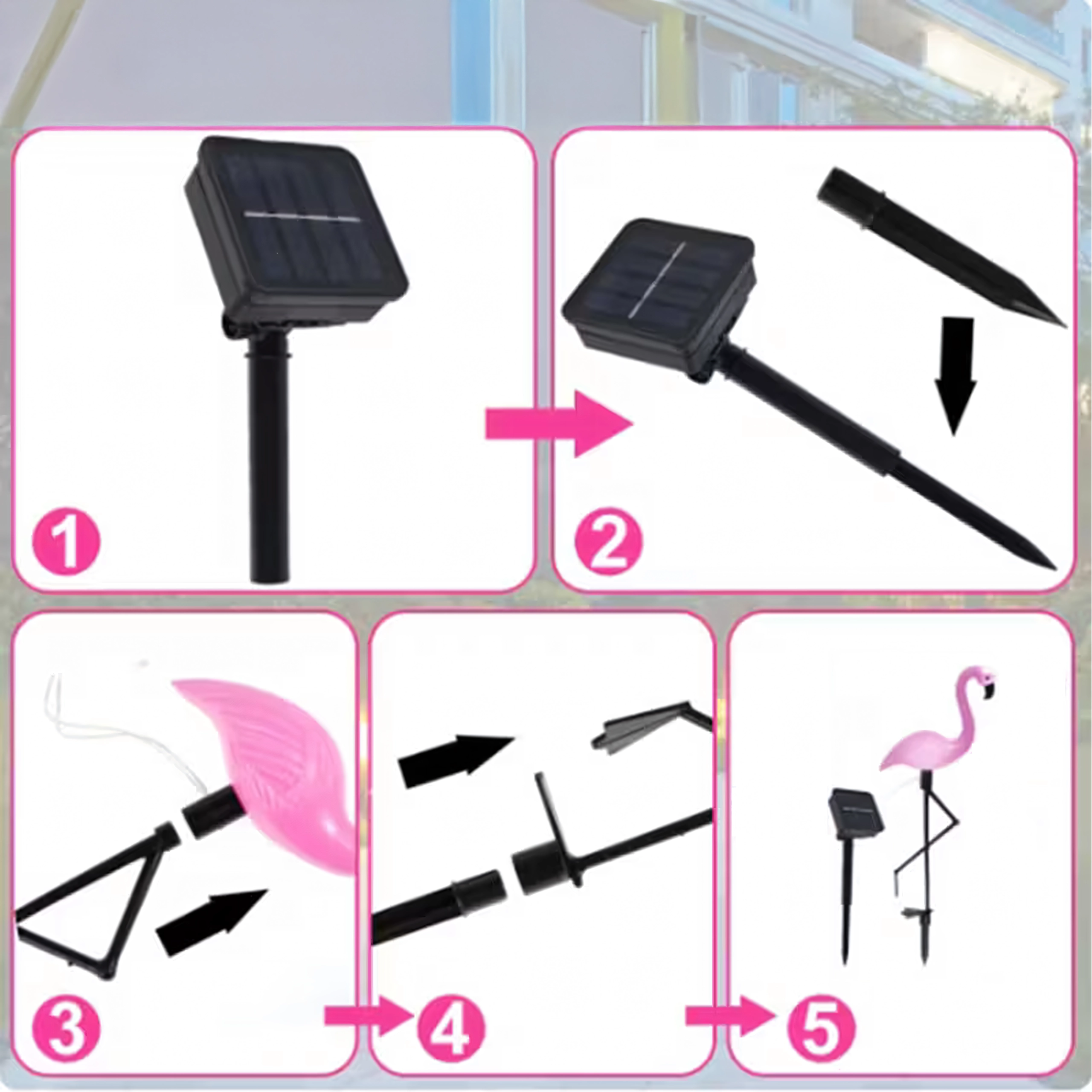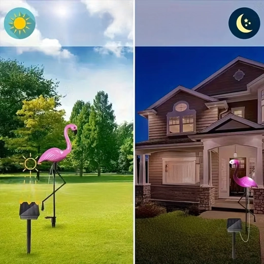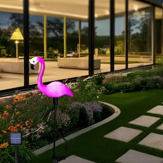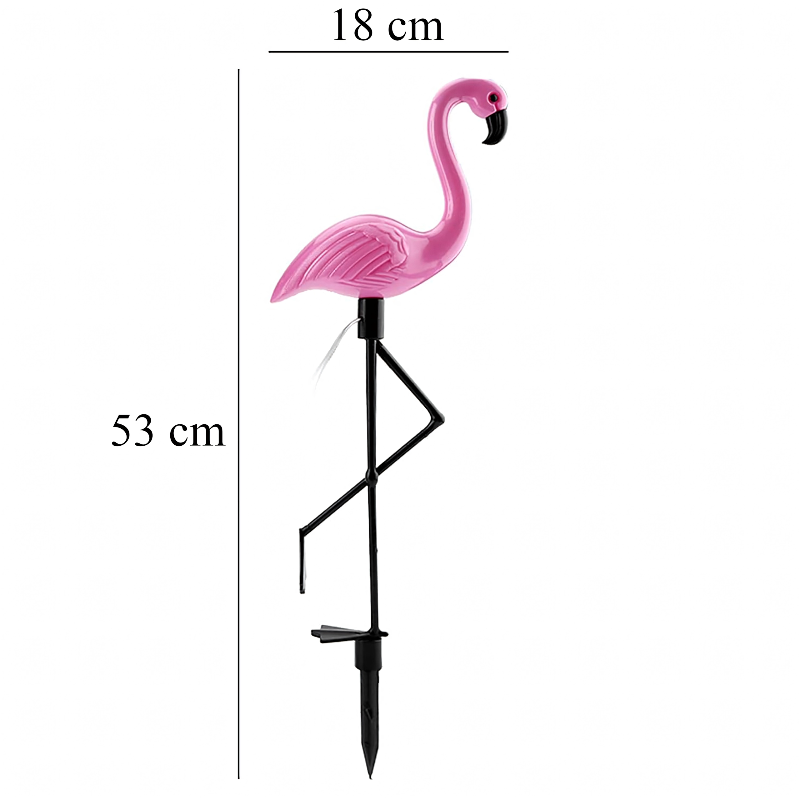 Laat je tuin stralen met een stijlvolle decoratie – een zonne-LED-lamp in de vorm van een flamingo met een hoogte van 53 cm. Biedt automatische verlichting in het donker, eenvoudige plaatsing in de grond en weerbestendige uitvoering. Ideaal voor paden, perken en terrassen.