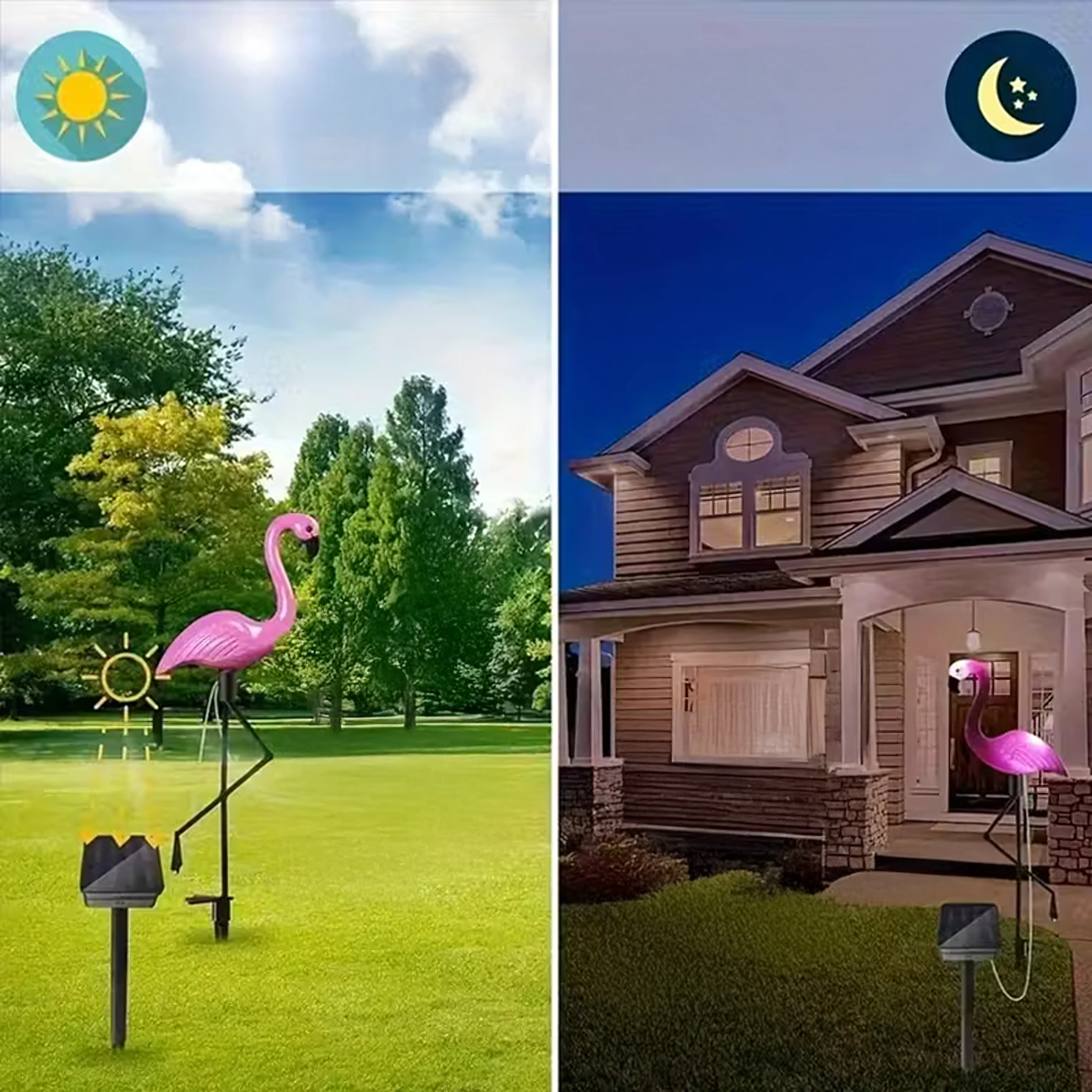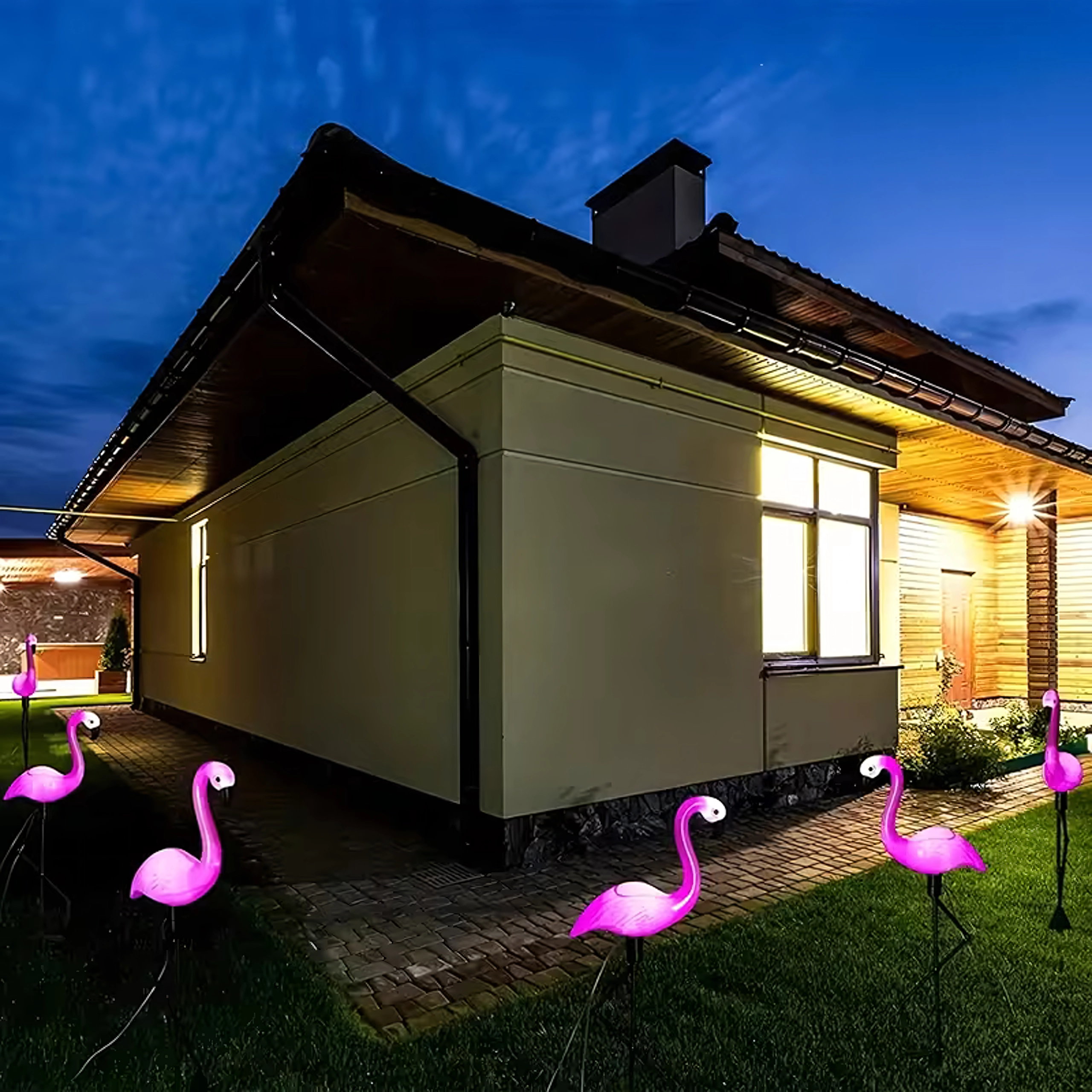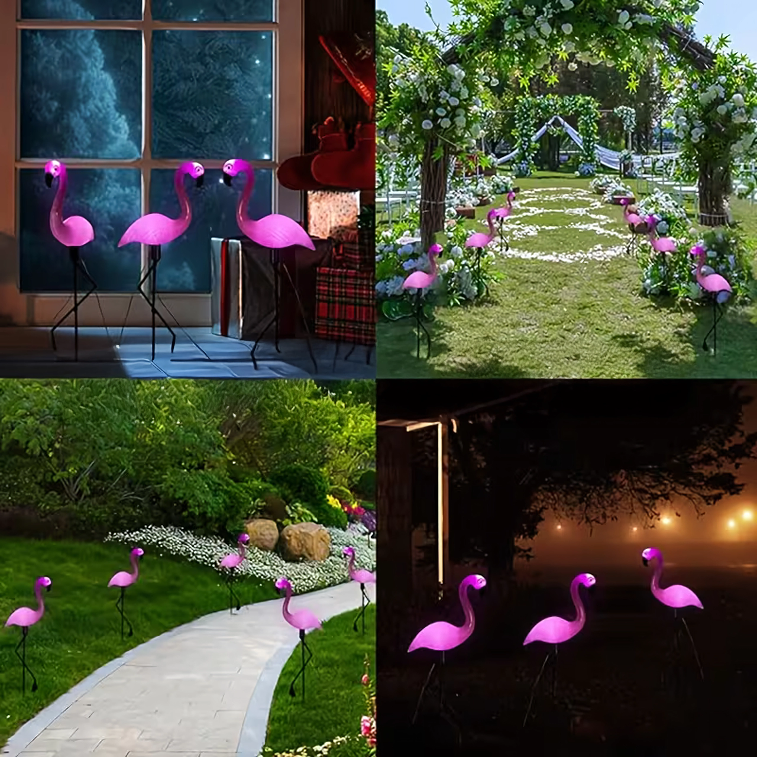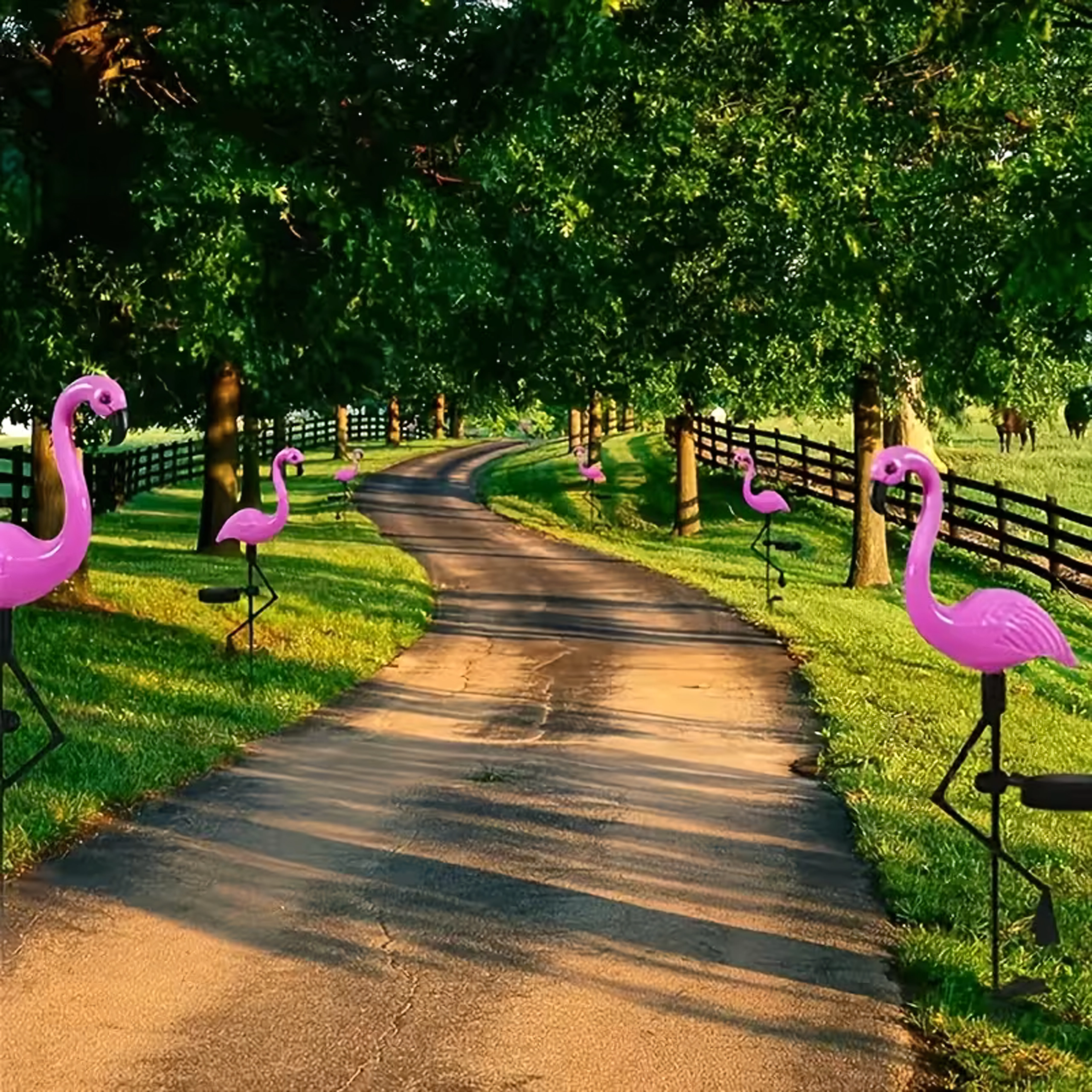 Het opvallende roze licht van de flamingo’s komt prachtig tot zijn recht langs wandelpaden, opritten en in siertuinen.