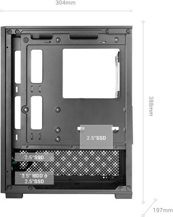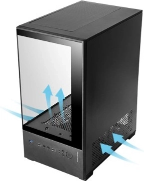 De MARS MC-SE2 is een compacte gaming Mini Tower die je build verandert in een opvallend showpiece. Dankzij de ononderbroken panelen van gehard glas komen je hardware en verlichting mooi tot hun recht, terwijl de zorgvuldig ontworpen luchtstroom de componenten op ideale temperatuur houdt.