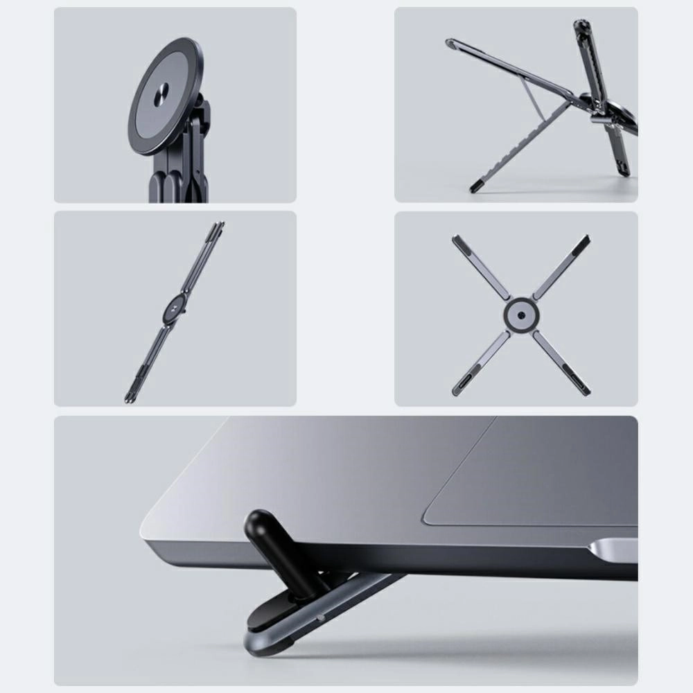 Doordachte constructie-elementen zoals antislip pads en ventilatie-openingen verhogen de stabiliteit en bevorderen de luchtstroom voor betere koeling van de laptop. De standaard is in een oogwenk op te vouwen tot een compact formaat, ideaal voor in rugzak of tas.